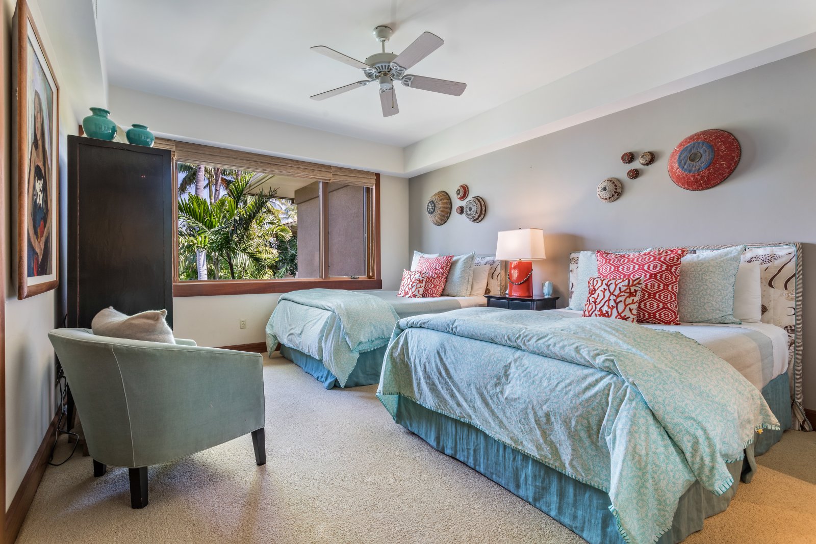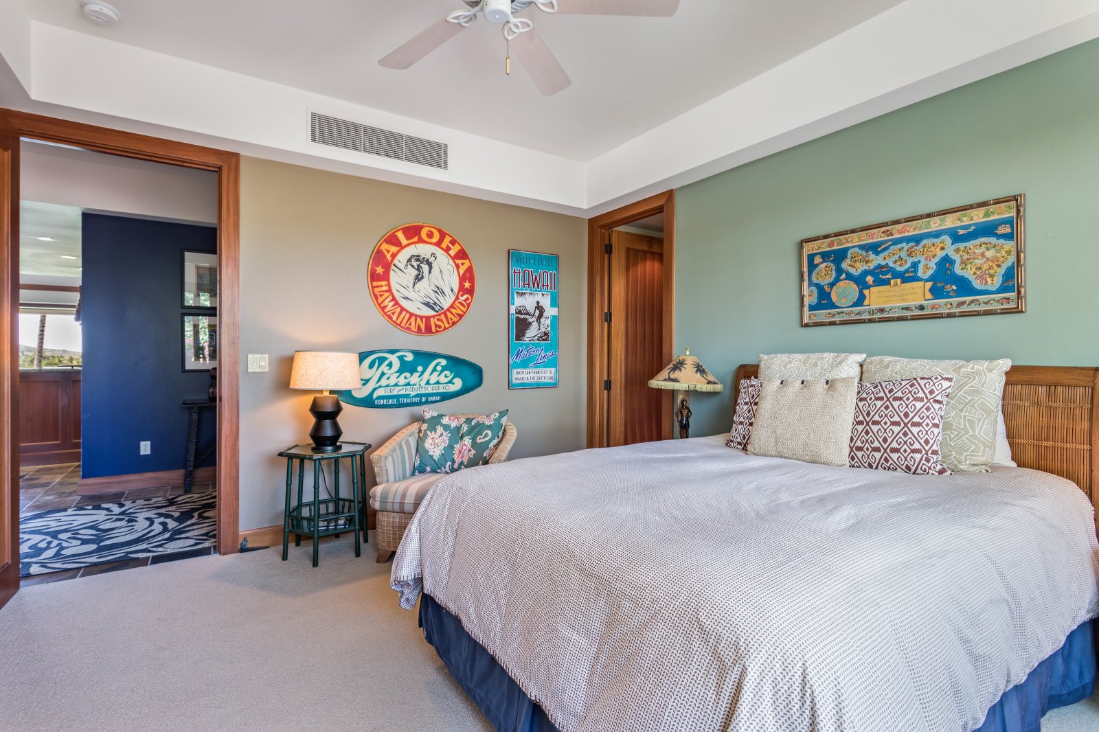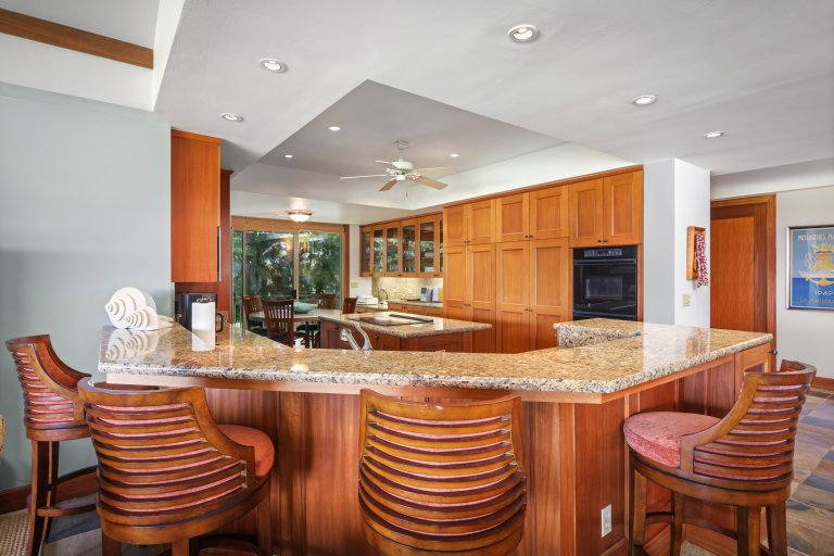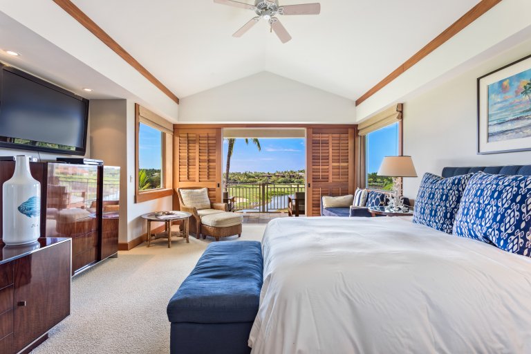 The villa features large windows, giving you ample natural lighting, vaulted ceilings, ceiling fans throughout, top-of-the-line appliances, high-quality bedding and linens, bathroom amenities, and commanding views of the golf course! The kitchen is well-equipped with all you need to make fabulous meals. Hualalai Waiulu Fairways is the ideal place to relax and enjoy the luxurious offerings of a private luxury villa, while still having the ability to access the Hualalai Resort amenities.* Here, you can enjoy the best of both worlds!