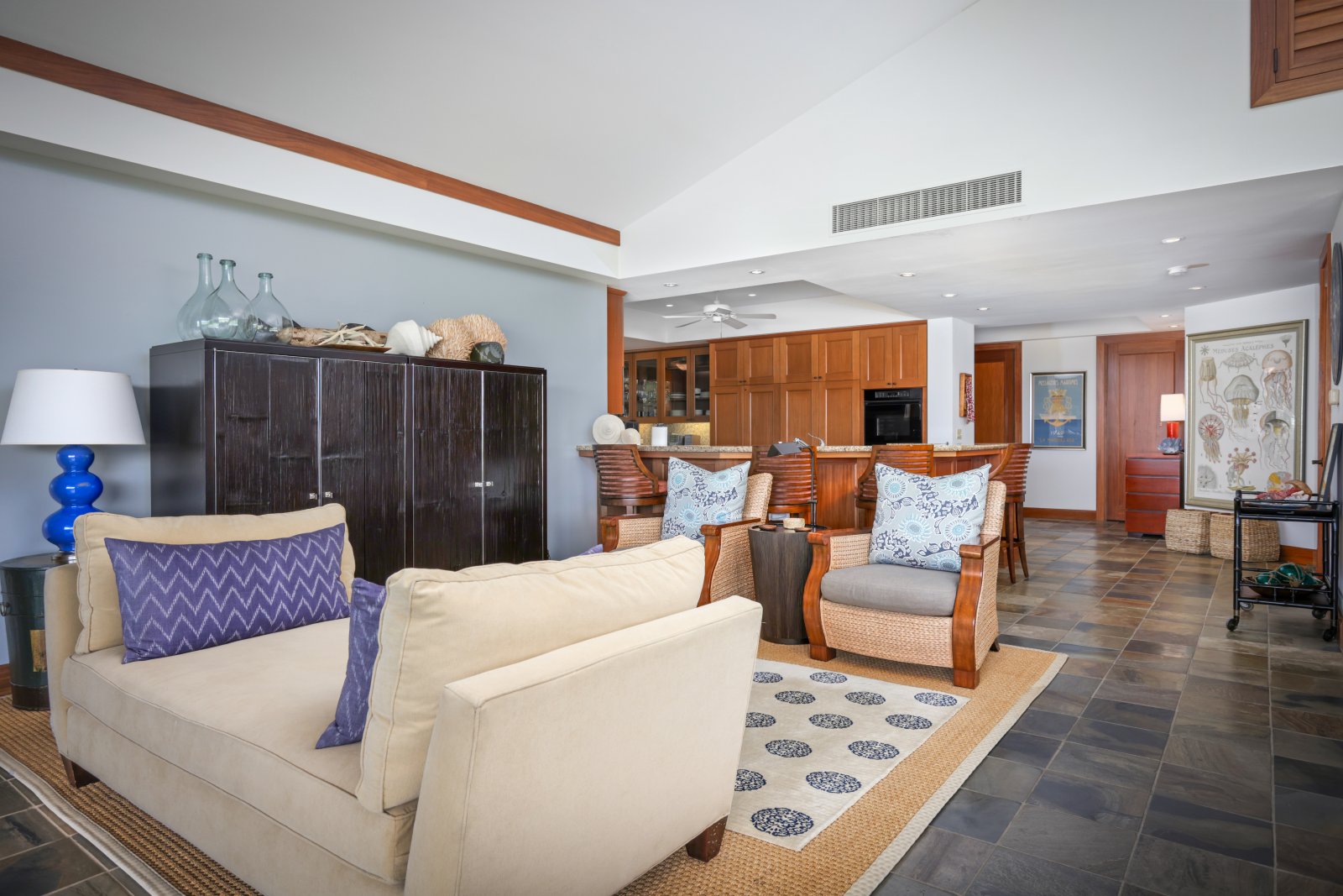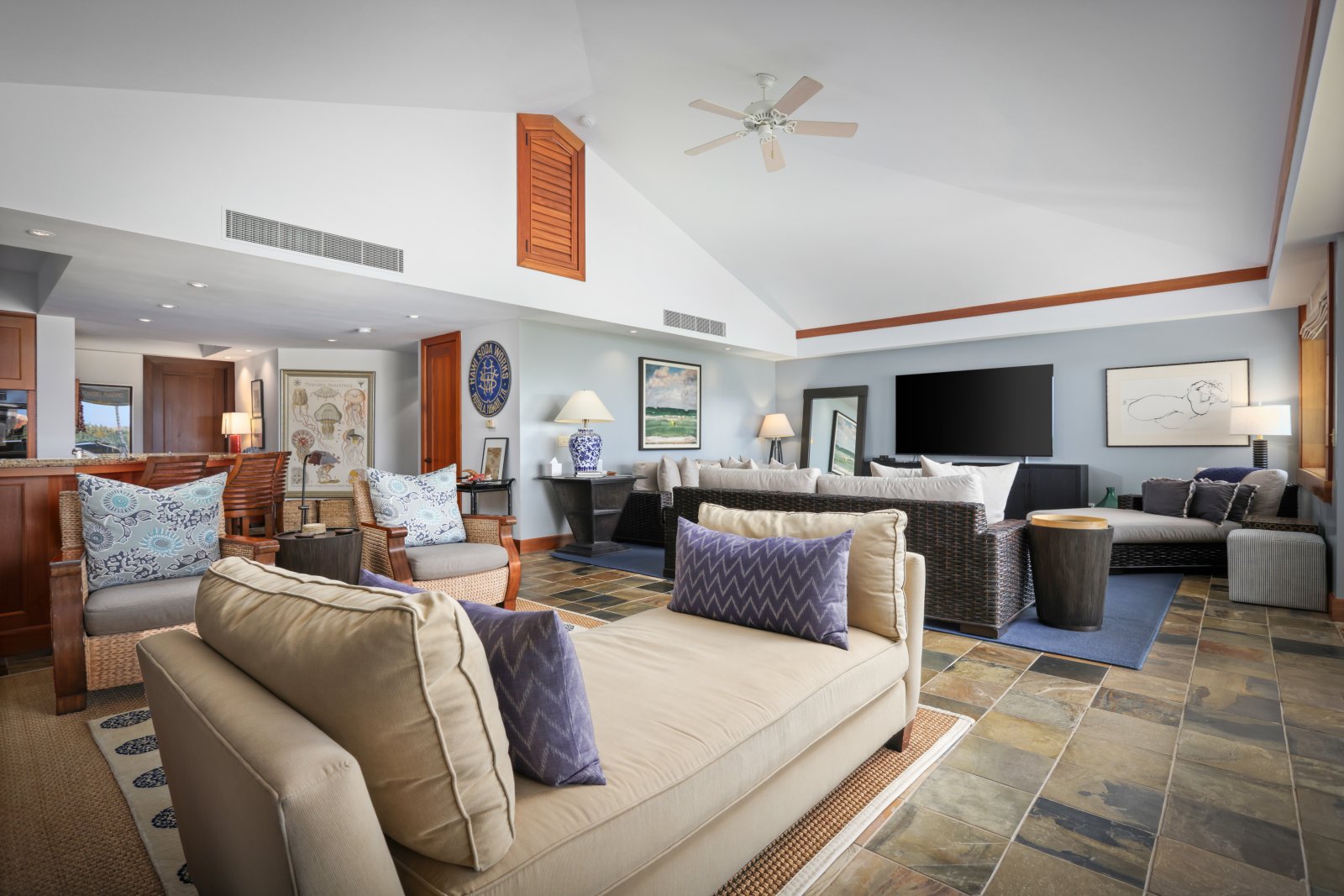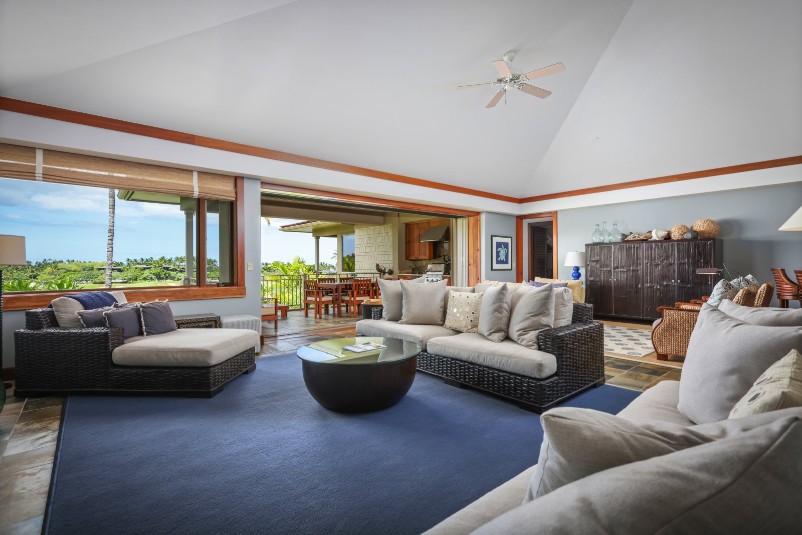 Direct Access to Patio • Multiple Seating Areas • Indoor/Outdoor Design • Vaulted Ceilings • Cable TV • DVD Player