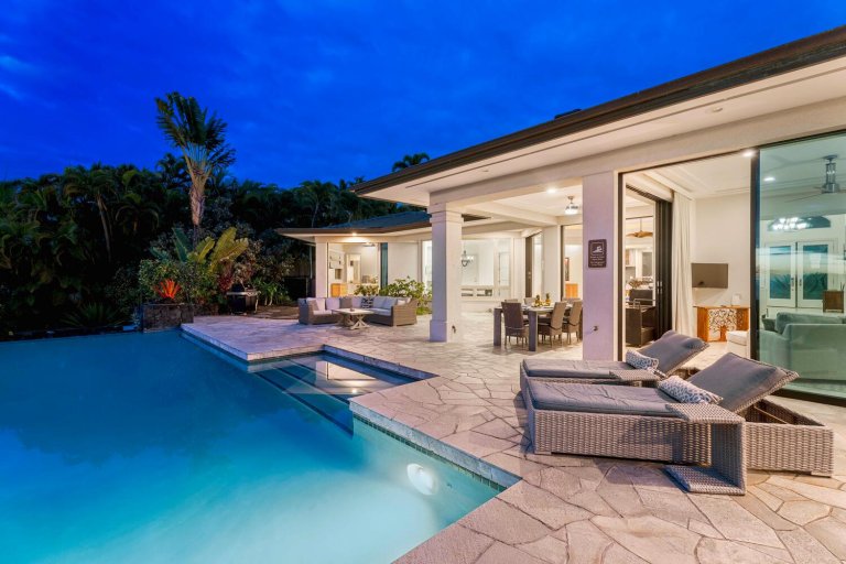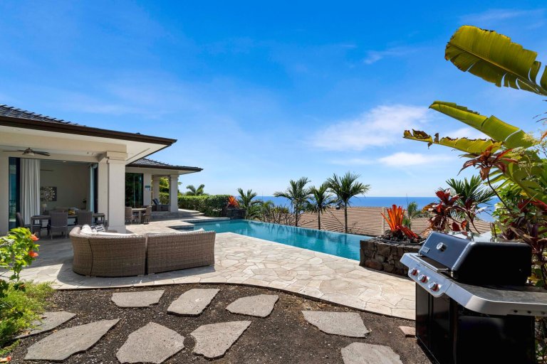 Welcome to Blue Hawaii, a spacious island retreat nestled in the desirable Keauhou Estates above Kailua-Kona. Designed for large groups to relax and reconnect, this impressive home offers 3,200 square feet of interior living space, a solar-heated infinity-edge pool, and multiple private sleeping suites—creating an ideal setting for memorable Big Island stays.With sweeping views, generous lanais, and thoughtfully arranged gathering spaces, Blue Hawaii blends comfort, convenience, and classic island living just minutes from beaches, golf, dining, and shopping.