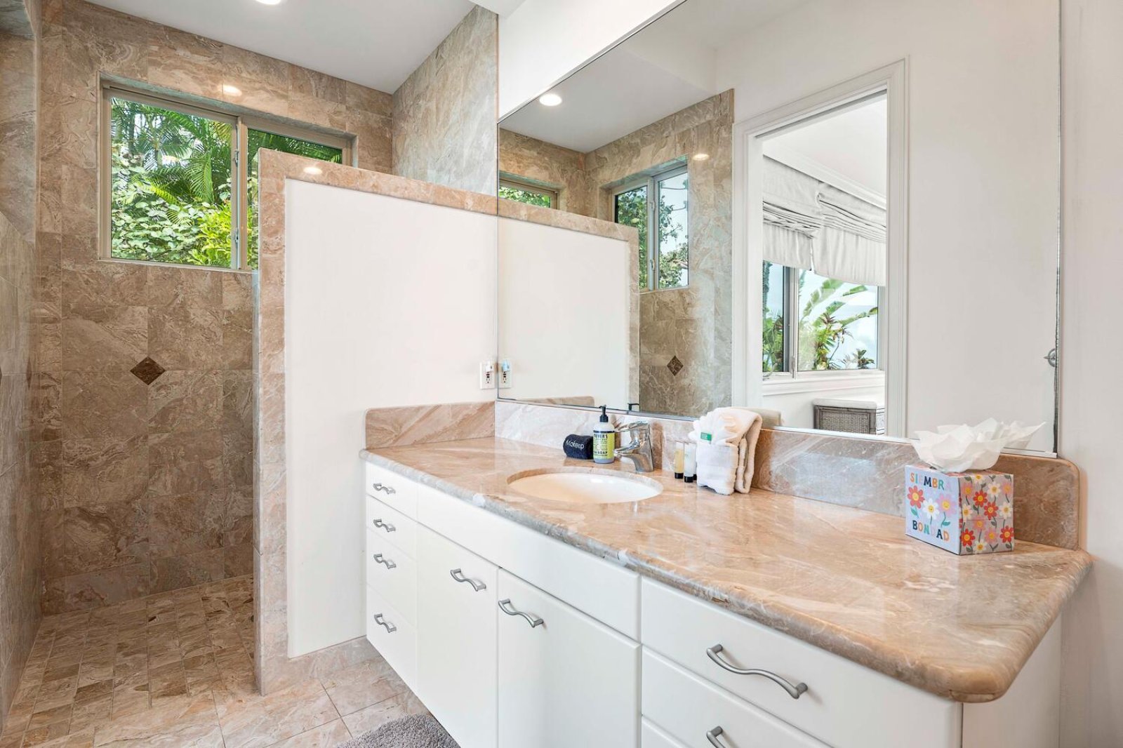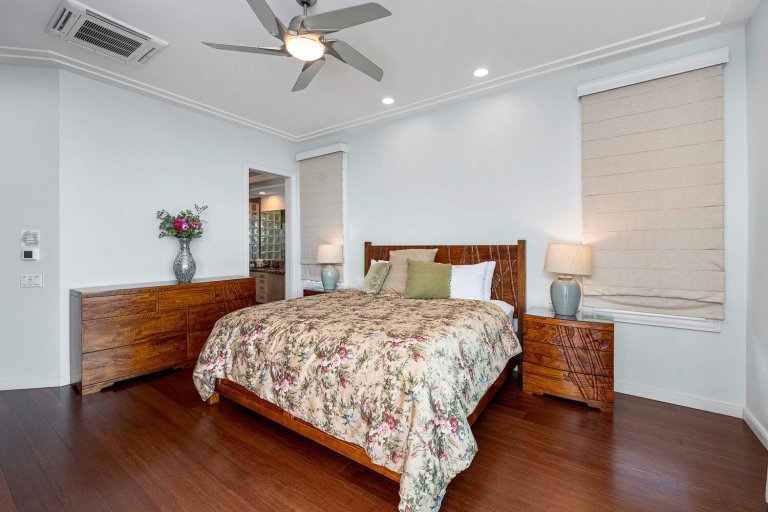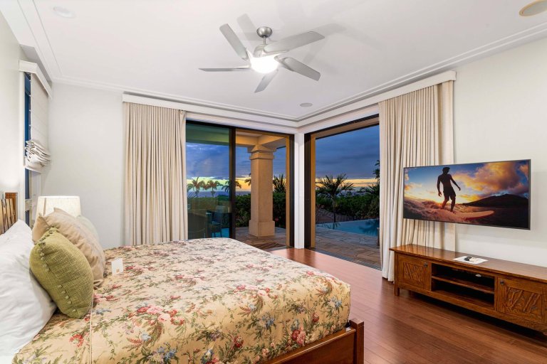 Blue Hawaii offers a variety of sleeping options designed to accommodate families and groups with ease:• Primary Suite: King bed, A/C, ceiling fan, ocean and pool views, lanai access, and ensuite bathroom.