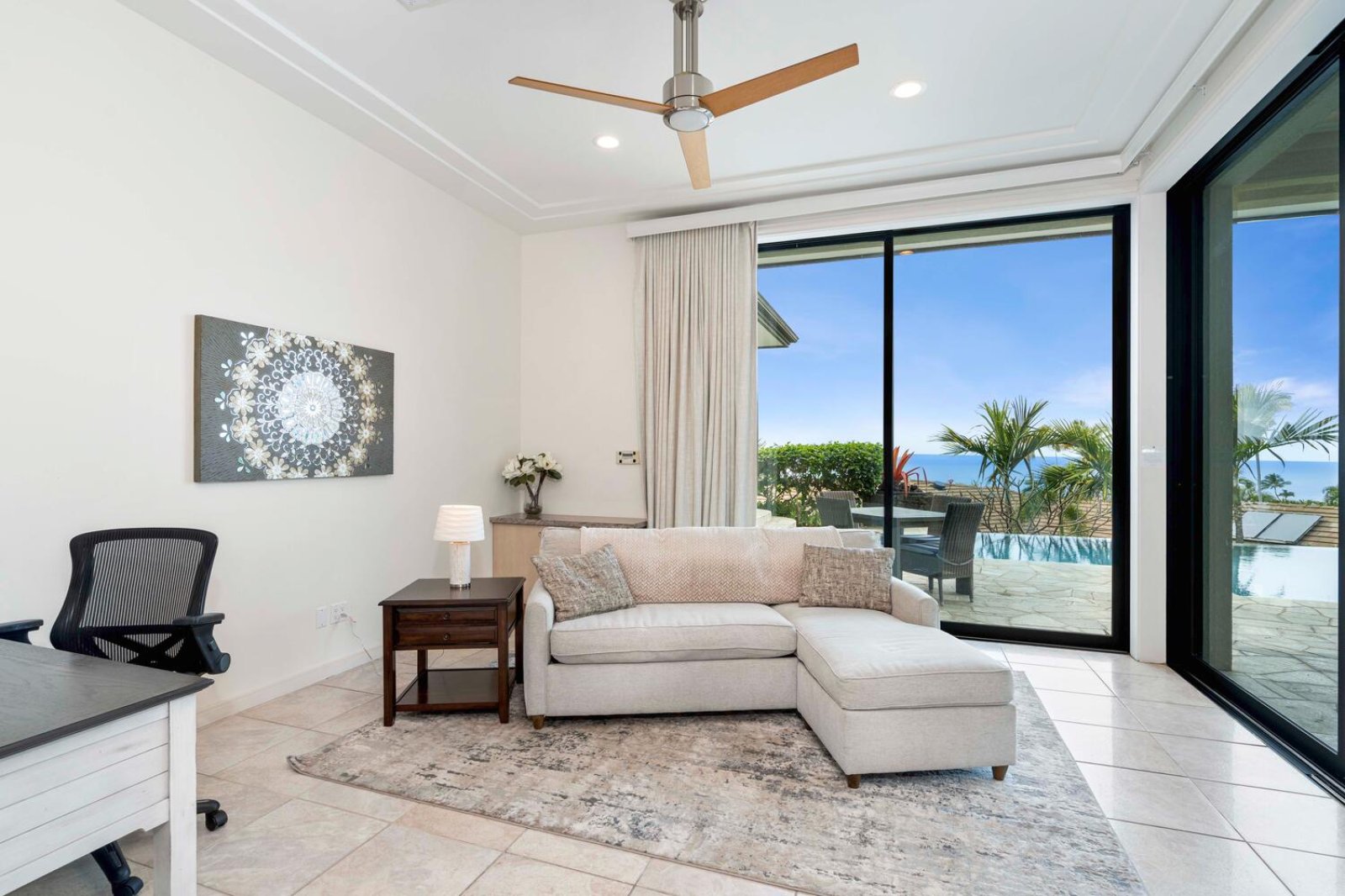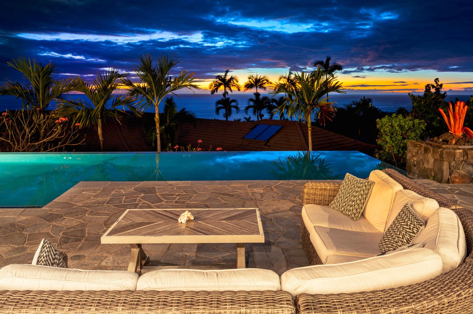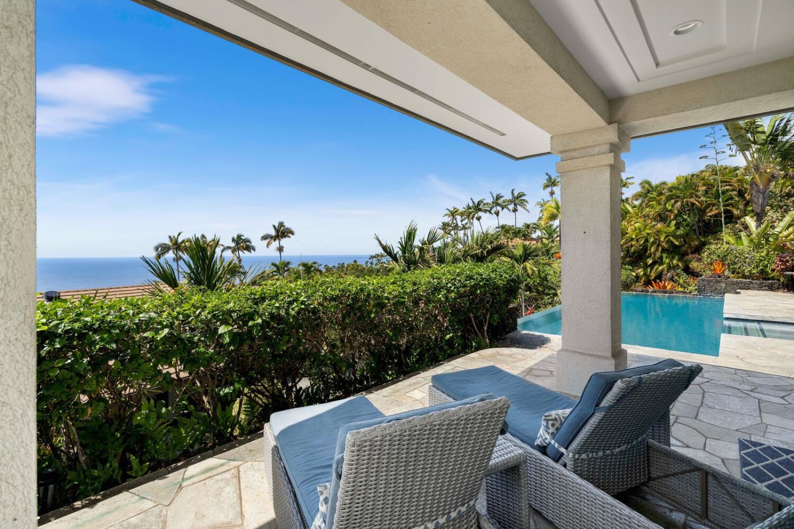 Step outside to a private outdoor oasis centered around a stunning solar-heated, infinity-edge pool with panoramic views. The expansive lanai includes:- Chaise loungers for sunbathing