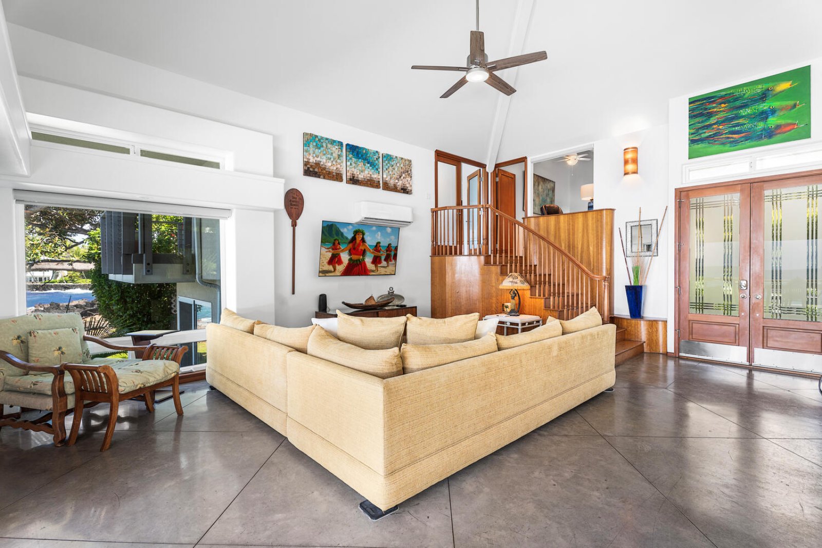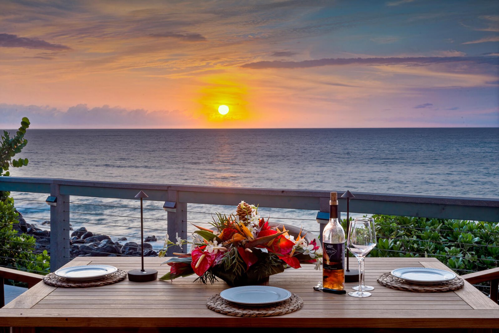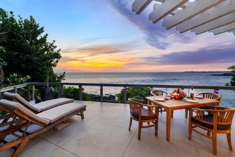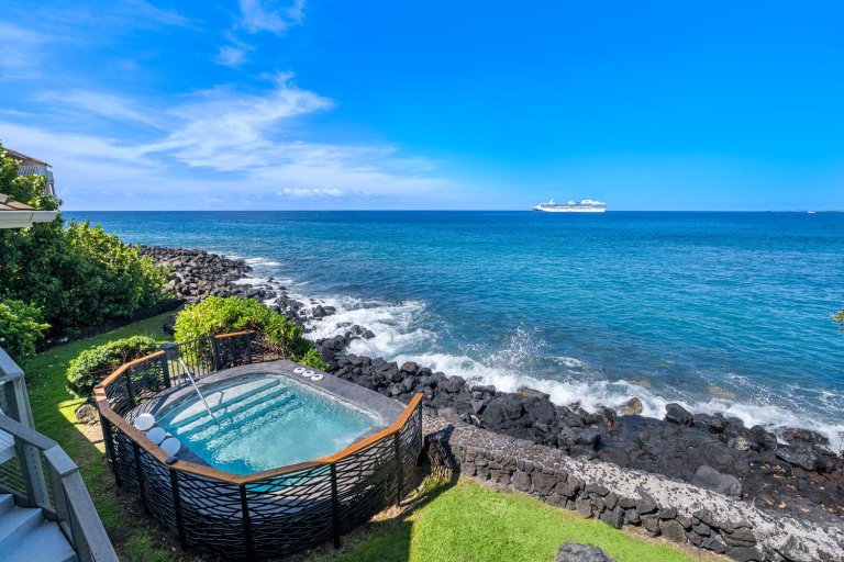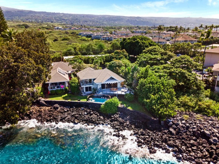 Welcome to Hale Kope Kai, a true oceanfront retreat set directly on the lava rock shoreline of Kailua-Kona on Hawaiʻi Island. Designed for guests who value privacy, scenery, and refined comfort, this two-bedroom residence with a bonus office loft offers uninterrupted views of the Pacific Ocean and front-row seating to Kona’s legendary sunsets.Whether enjoyed as a romantic escape, a small family getaway, or a work-from-paradise retreat, Hale Kope Kai combines modern living with an exceptional walk-to-beach location along the celebrated Kona Coast.