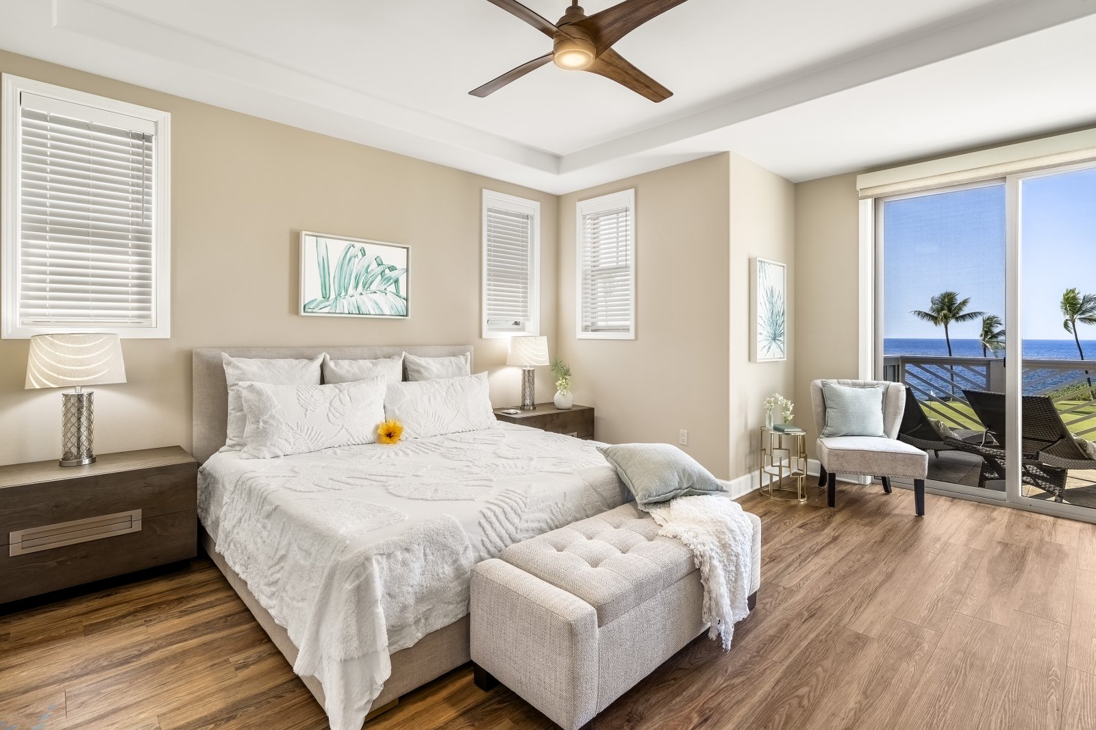 Holua Kai #26 offers flexible sleeping arrangements across two levels, comfortably accommodating families and multi-generational groups.• Primary Suite