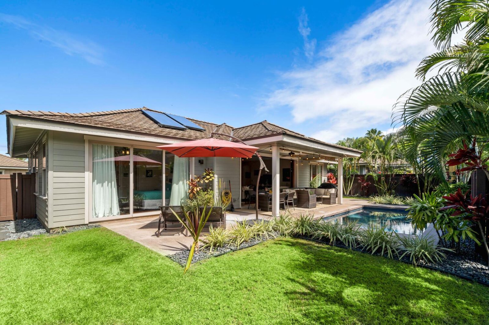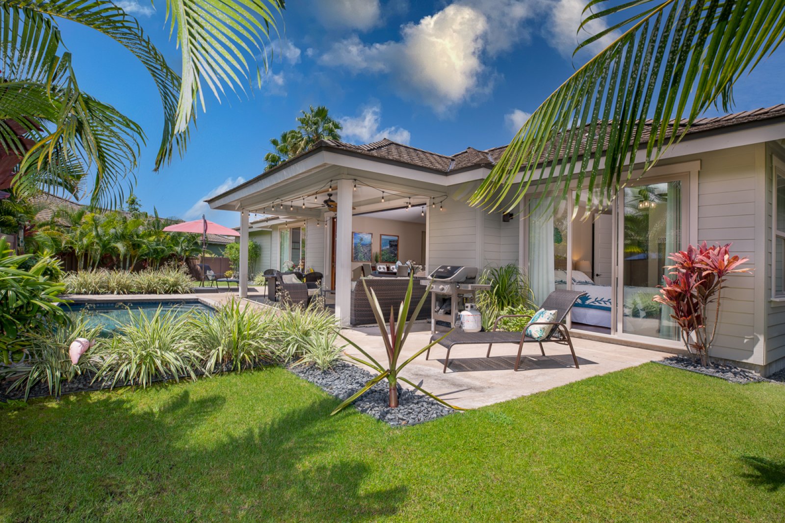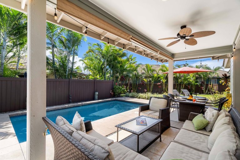 Step outside to your covered lanai and private pool—an inviting setting for morning coffee, afternoon sunbathing, or al fresco dinners beneath the palms. The gated backyard offers a peaceful, lush environment where ocean breezes and rustling foliage create a true sense of island serenity.Community & Resort Amenities