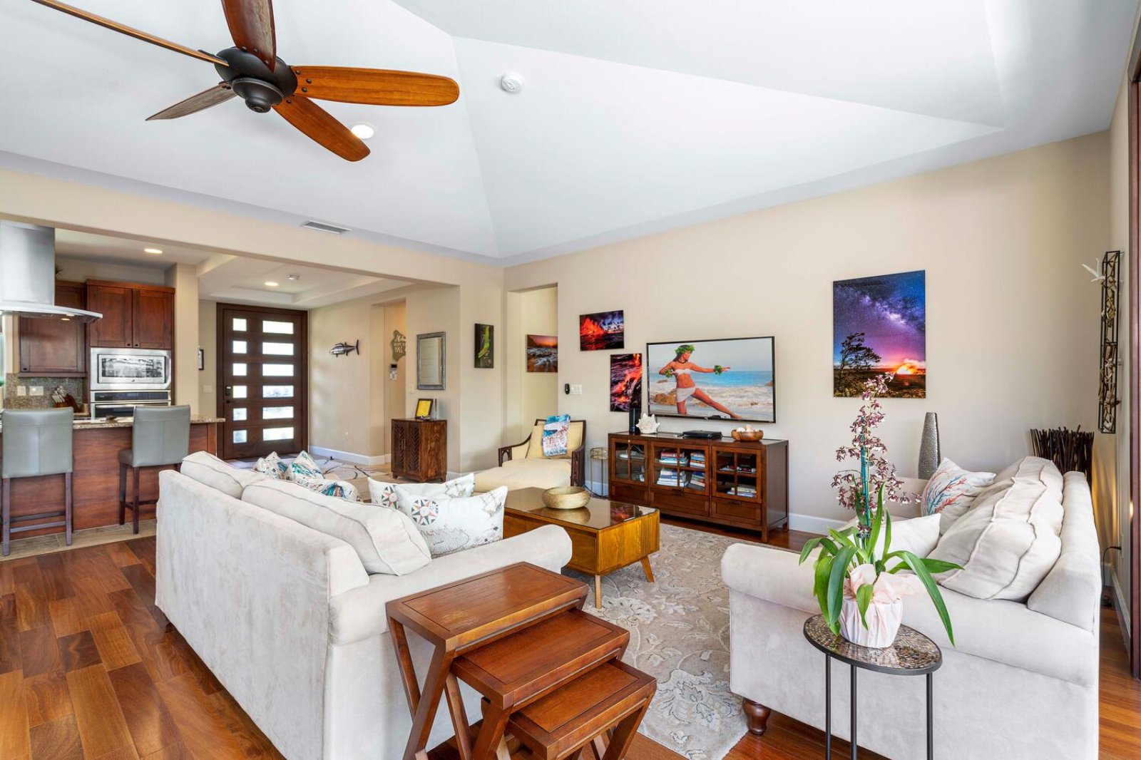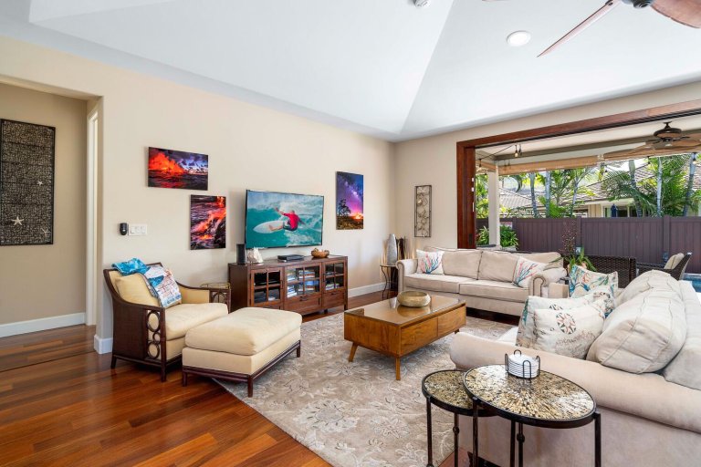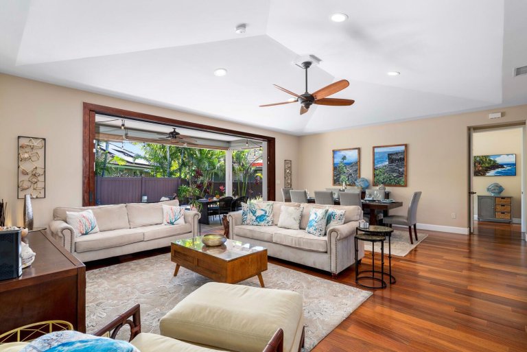 Welcome to Holua Kai #32, a beautifully appointed plantation-style residence nestled within Keauhou’s prestigious gated oceanfront enclave. Ideally located near championship golf and just a short walk from Keauhou Bay, this elegant home offers the perfect balance of privacy, comfort, and resort-style living. With panoramic coastal sunsets, breezy indoor–outdoor spaces, and access to exceptional community amenities, Holua Kai #32 is an inviting Big Island escape designed for relaxation and adventure alike.Living Spaces