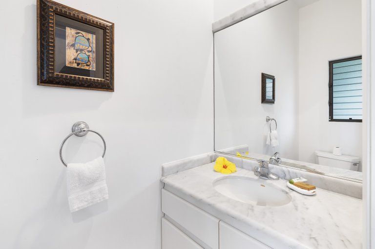 • Guest Bedroom Three: Queen bed, split A/C, ensuite bathroom, private outdoor shower, and a charming breakfast nook.