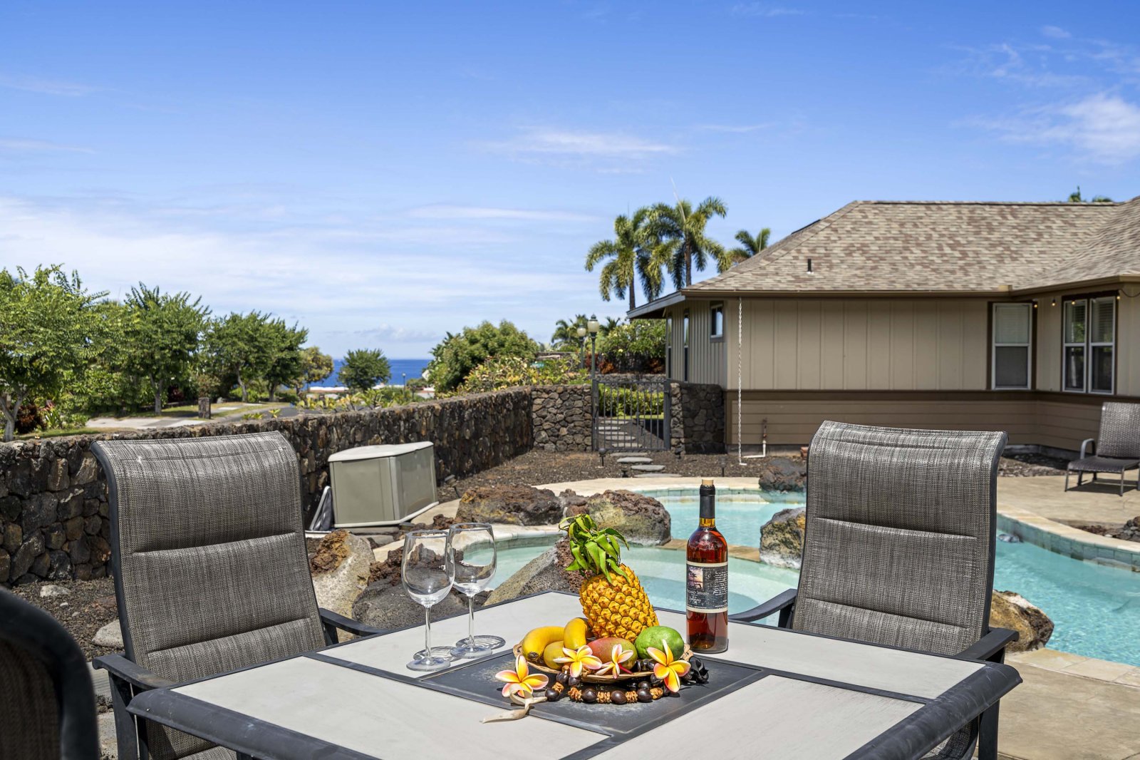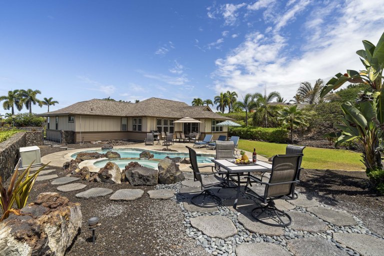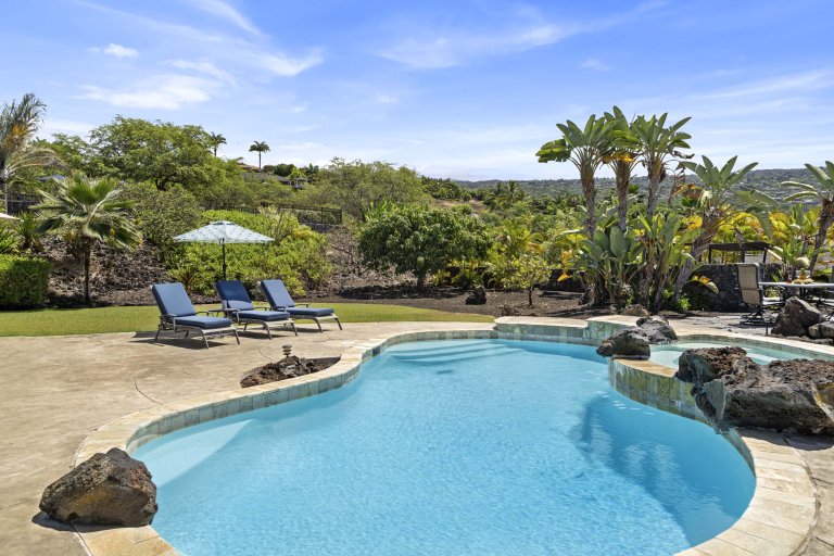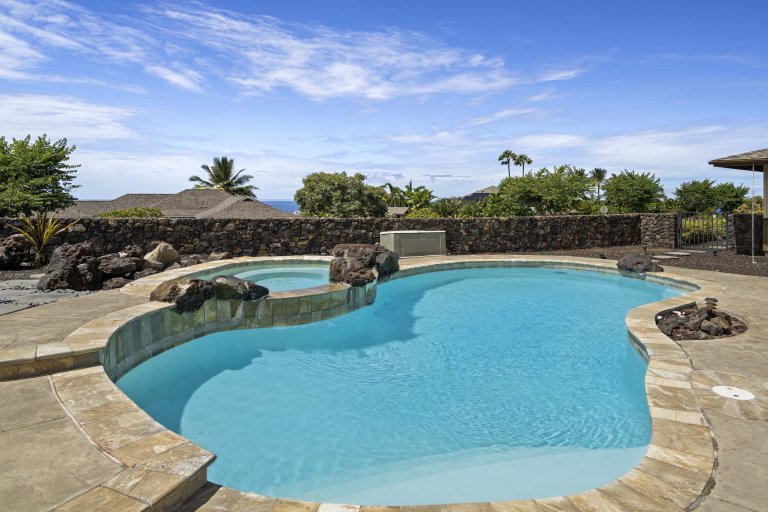 Welcome to Kahakai Estates Hale, a newly renovated luxury retreat located within the private, gated community of Kahakai Estates in Kailua-Kona. Thoughtfully redesigned with elevated finishes and timeless furnishings, this three-bedroom, two-and-a-half-bath residence offers a sophisticated yet welcoming setting for families, couples, or extended stays on the Big Island. With central air conditioning, a private pool and hot tub, and seamless indoor-outdoor living, Kahakai Estates Hale delivers comfort, privacy, and an authentic sense of place.From the moment you arrive, the home’s fresh interiors and curated décor set a relaxed, upscale tone. Restoration Hardware furnishings, updated flooring, and refined materials throughout create a polished environment that feels both contemporary and inviting.