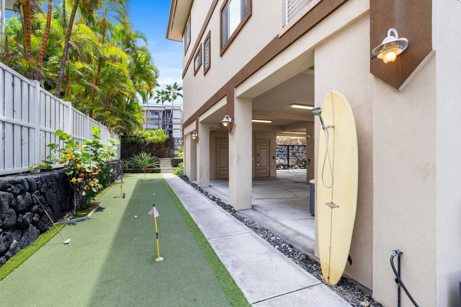 - Private putting green and outdoor shower