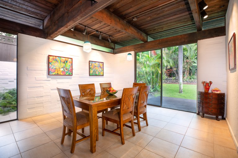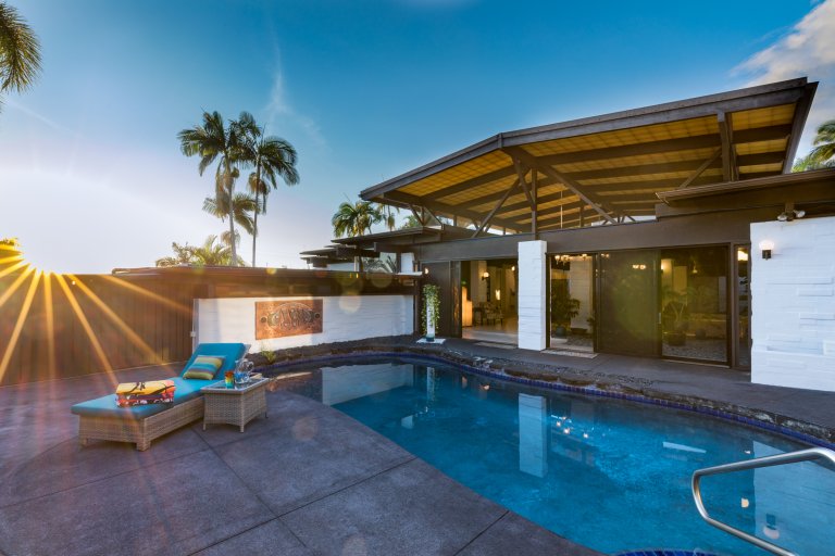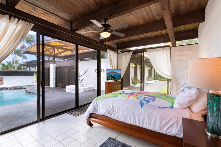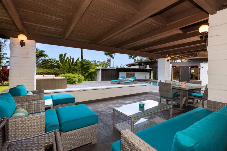 Welcome to Ono Oasis, a refined private retreat set amid lush tropical landscaping in Kailua-Kona. Designed for relaxed indoor-outdoor living, this elegant three-bedroom estate offers a peaceful setting with a private solar-heated saltwater pool, open-air living spaces, and close proximity to the best of the Kona Coast. Spanning approximately 2,800 square feet, Ono Oasis is ideal for families or small groups seeking comfort, privacy, and an authentic island experience.From the moment you arrive, the home’s tranquil garden setting and thoughtfully designed interiors create a sense of ease. Natural light, high ceilings, and seamless flow between indoor and outdoor spaces define the home, while curated furnishings and island-inspired details enhance the relaxed yet polished atmosphere.