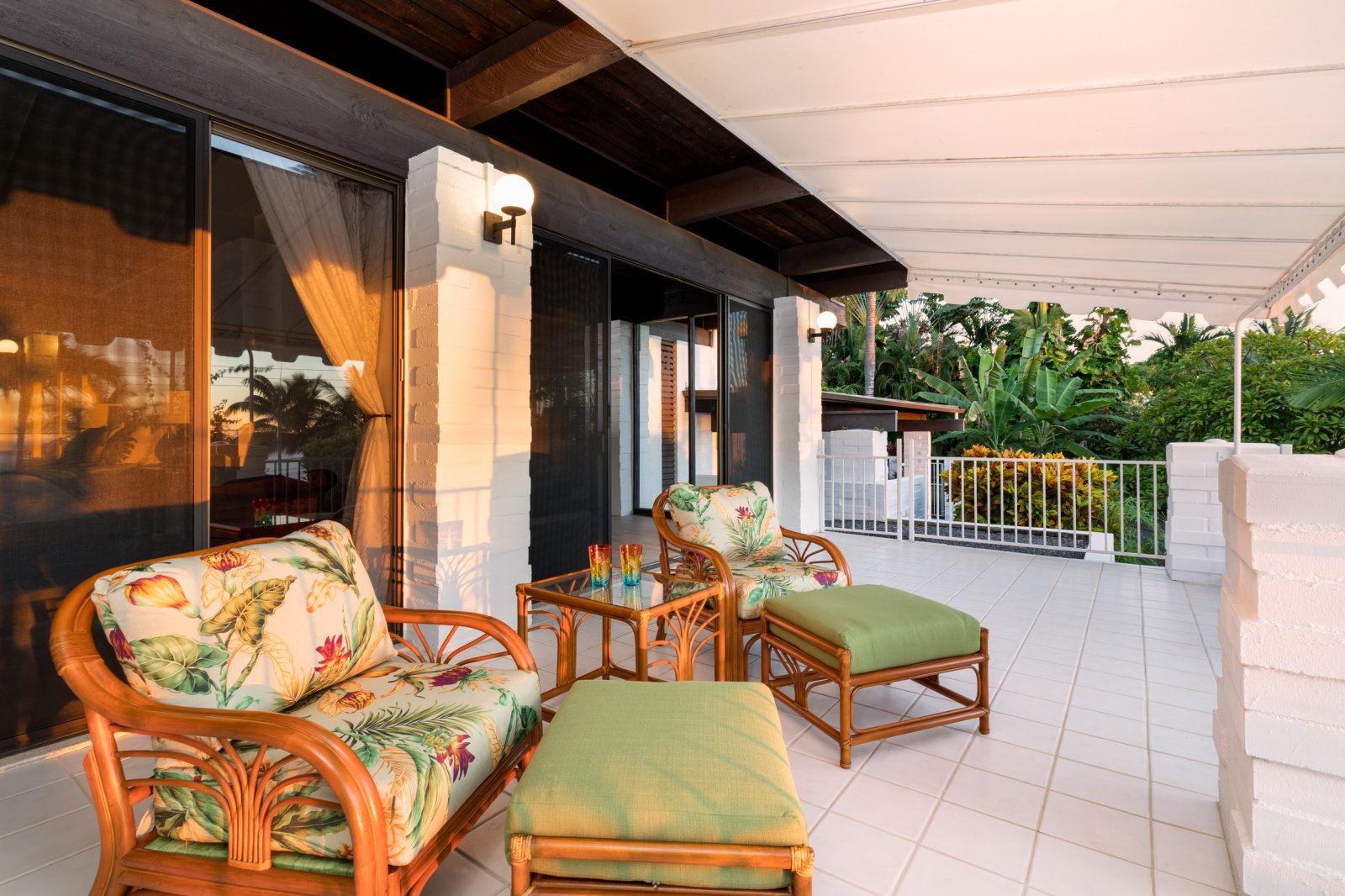 The fully equipped kitchen offers everything needed for effortless island living. Featuring a refrigerator, stove, microwave, dishwasher, and ample counter space, it is well suited for preparing fresh local ingredients or simple family meals. A breakfast bar adds casual seating, perfect for morning coffee or light bites throughout the day.Outdoor Living