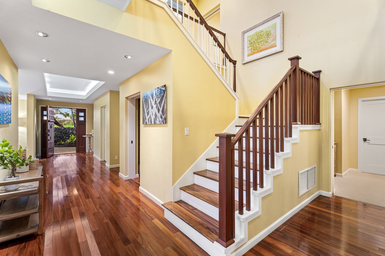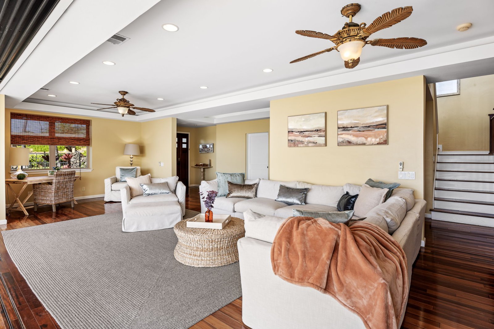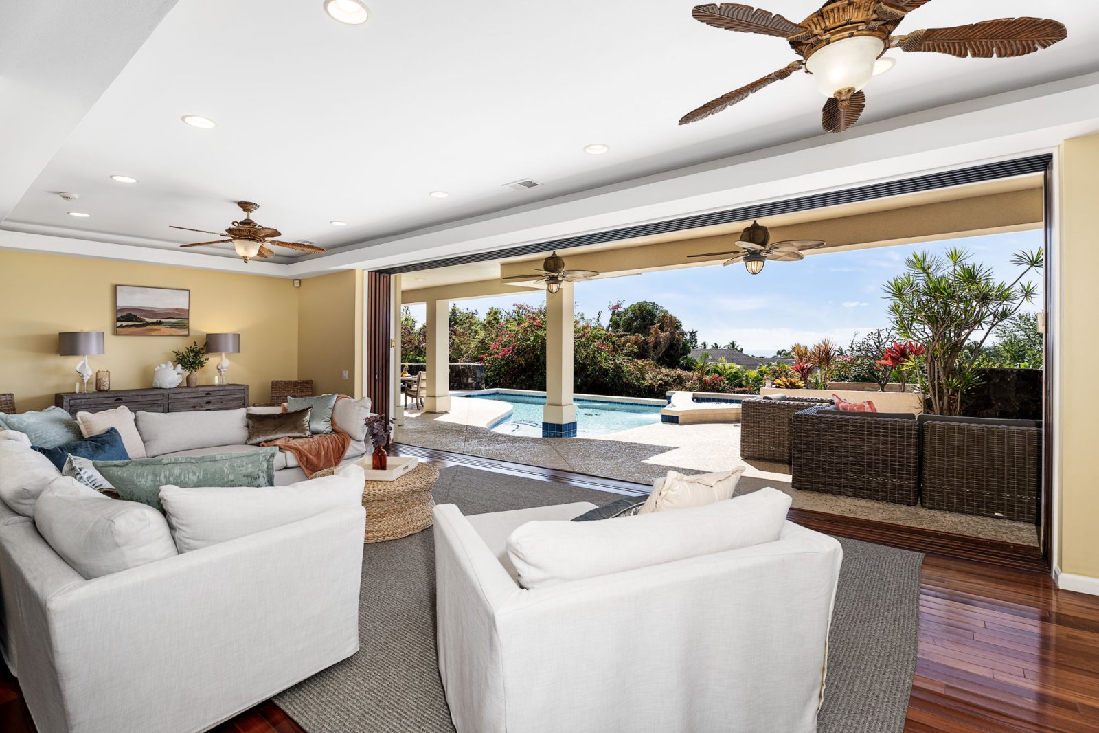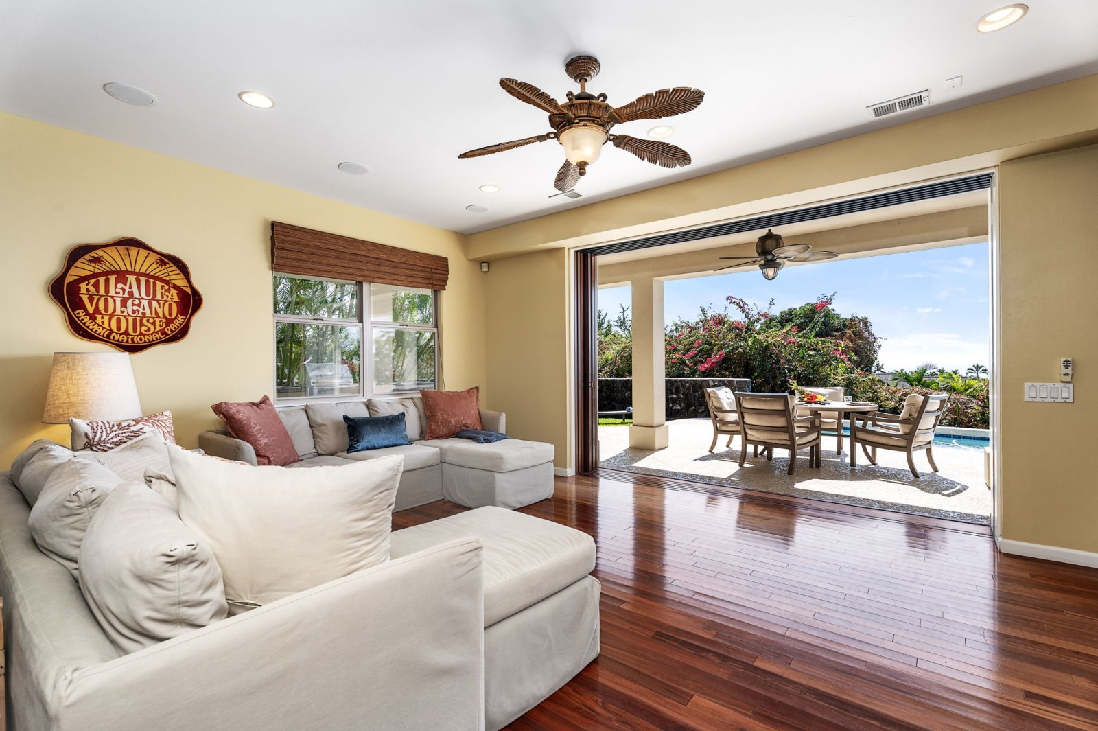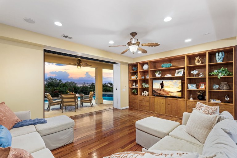 Welcome to Papala Place, a refined four-bedroom residence set within the gated community of Kahakai Estates, just minutes from the beaches, dining, and cultural attractions of Kailua-Kona. Designed for relaxed luxury and effortless gathering, this private retreat pairs generous indoor living with lush outdoor spaces, partial ocean views, and a resort-style pool environment. Papala Place offers a peaceful residential setting while keeping Kona’s most popular experiences close at hand.Living Spaces