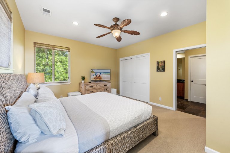 • Guest Bedroom Four - King bed, central air conditioning, and ceiling fan.