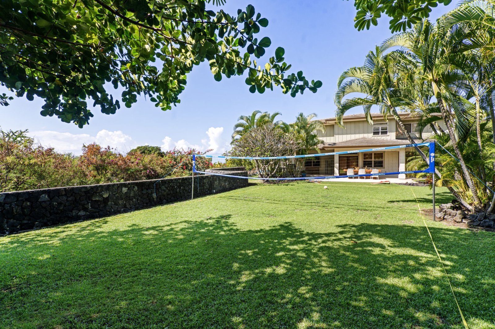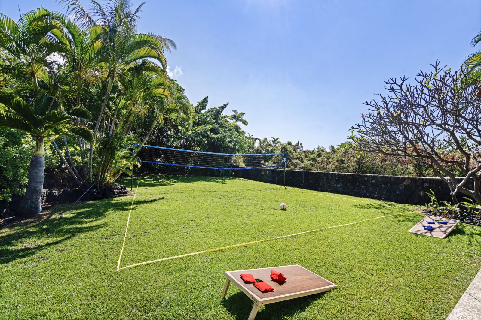 - Private lawn with volleyball net and cornhole for casual recreation