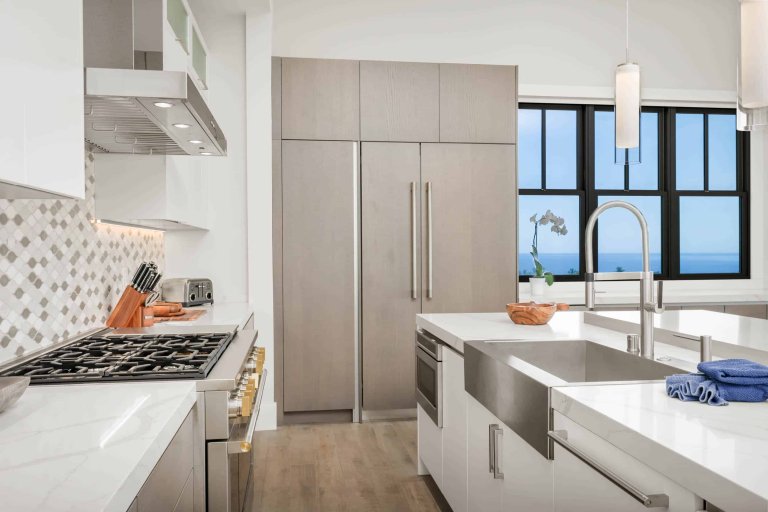 - Kitchen with high-end appliances and seating for 10