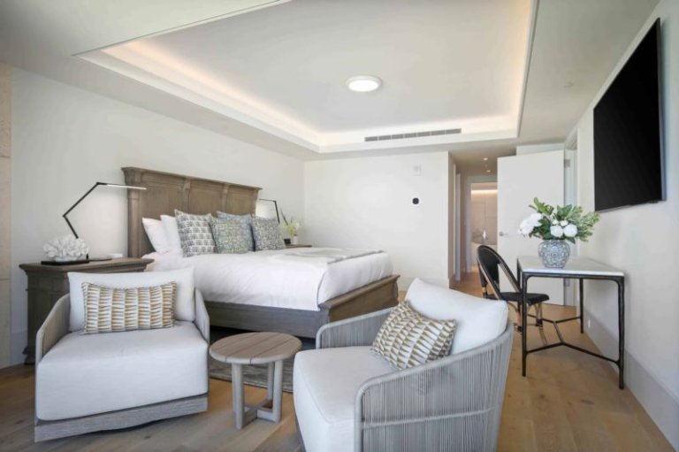 Bed: King Bed • En-Suite Bath with Walk-In Shower and Bathtub • Flat-Screen TV • Direct Access to Terrace • Walk-In Closet • Desk
