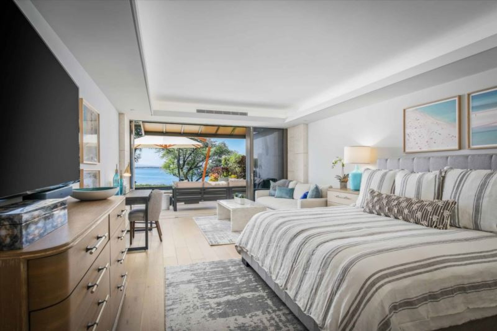 Bed: King Bed • En-Suite Bath • Direct Access to Patio and Pool • Flat-Screen TV • Desk • Additional Seating • Ocean View