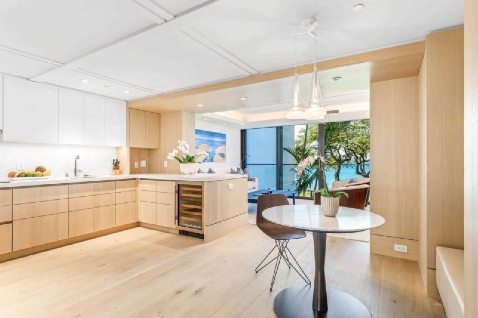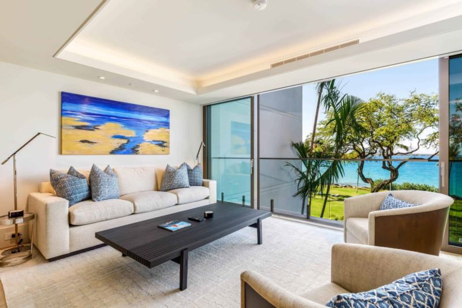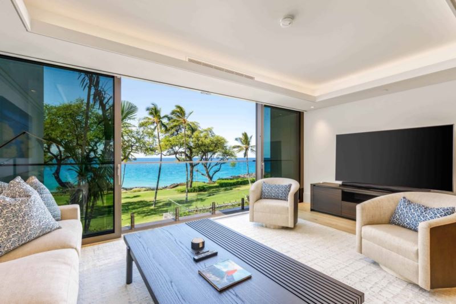 This stylish, oceanfront, newly-constructed, third level island masterpiece offers floor-to-ceiling sliding window walls that create indoor/outdoor living space, a chef’s kitchen outfitted with professional-grade Wolf, Sub-Zero and Miele appliances, wine storage and hand-crafted cabinetry. Additional features include one guest suite with a retreat-like, attached bath and sumptuous king size bed, an Asko washer/dryer, air conditioning and furnished lanai. This residence is steps from the Hapuna Golf Course Clubhouse.