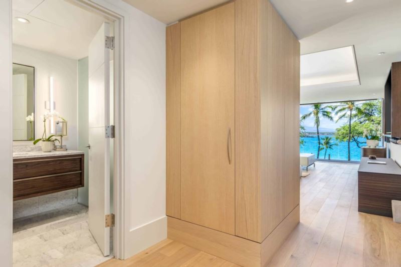 This exceptional, oceanfront, newly-constructed, fourth level studio offers floor-to-ceiling sliding window walls that create indoor/outdoor living space, a luxe chef’s kitchen outfitted with professional-grade Wolf, Sub-Zero and Miele appliances, wine storage and hand-crafted cabinetry. Additional features include a retreat-like, attached bath and sumptuous king size bed and twin sofa pullout if needed, Asko washer/dryer, air conditioning and lanai. This residence is steps from the Hapuna Golf Course Clubhouse.