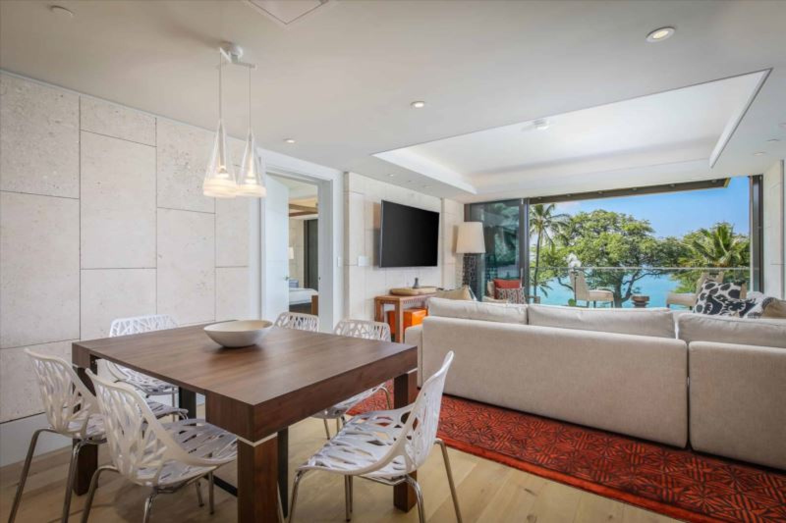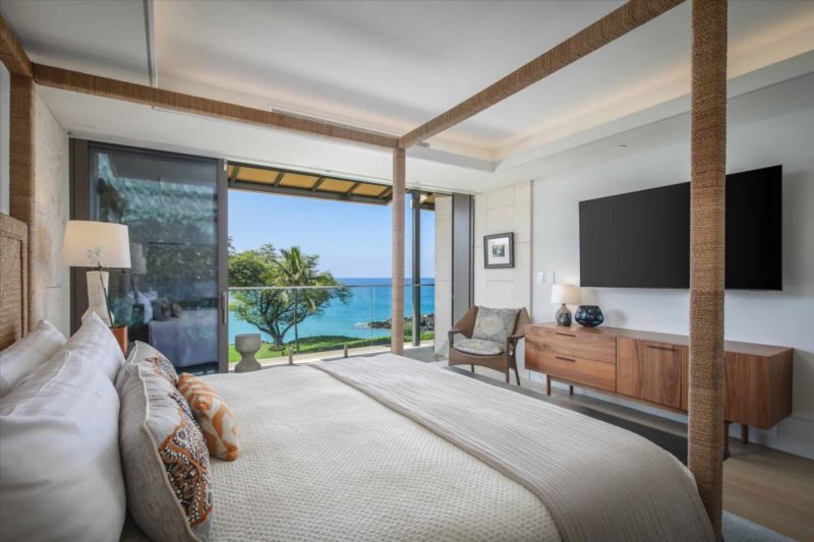 This remarkable, oceanfront, island masterpiece offers floor-to-ceiling sliding window walls that create indoor/outdoor living space, a decadent kitchen outfitted with professional-series Wolf and Sub-Zero appliances, as well as a dining table for six. Additional features include four guest suites, each with a sumptuous, attached bathroom (three have king size beds, the fourth has a queen size bed), air conditioning, European Oak hardwood flooring, washer/dryer and a handsomely-furnished lanai. This residence is steps from the Hapuna Golf Course Clubhouse.