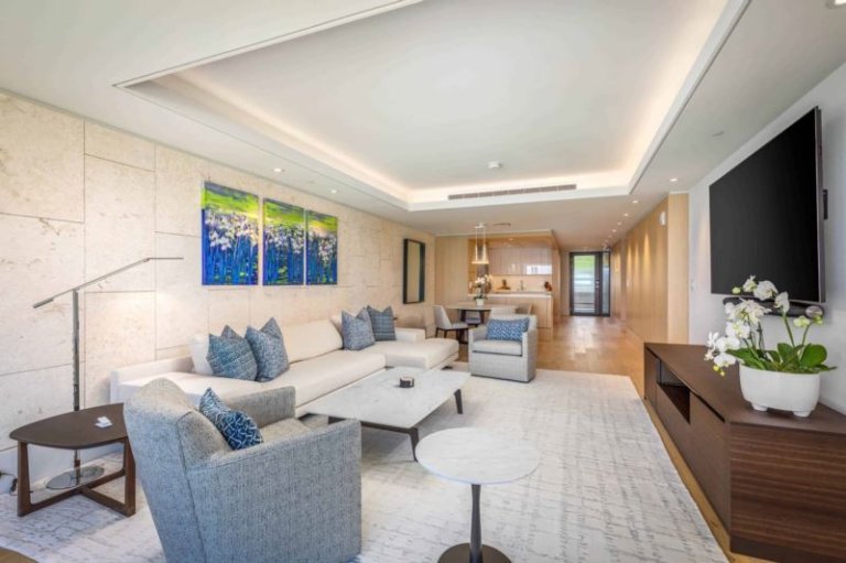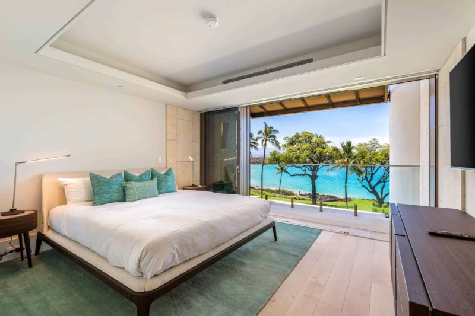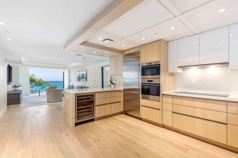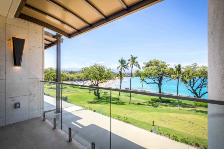 This contemporary, oceanfront, newly-constructed, fourth level island masterpiece offers floor-to-ceiling sliding window walls that create indoor/outdoor living space, a chef’s kitchen outfitted with professional-grade Wolf, Sub-Zero and Miele appliances, wine storage and hand-crafted cabinetry. Additional features include one suite with a retreat-like, attached bath and sumptuous king size bed, a second guest bedroom, an Asko washer/dryer, air conditioning and furnished lanai. This residence is steps from the Hapuna Golf Course Clubhouse.