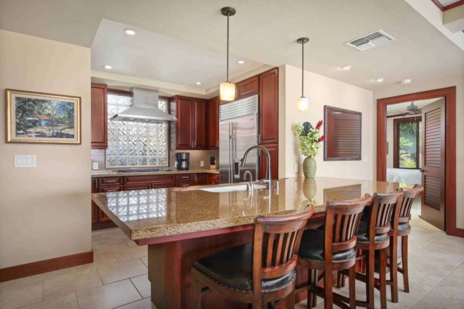 Fully Equipped Kitchen Stainless Steel Appliances • Granite Counters • Wine Cooler • Bar Seating - for 4