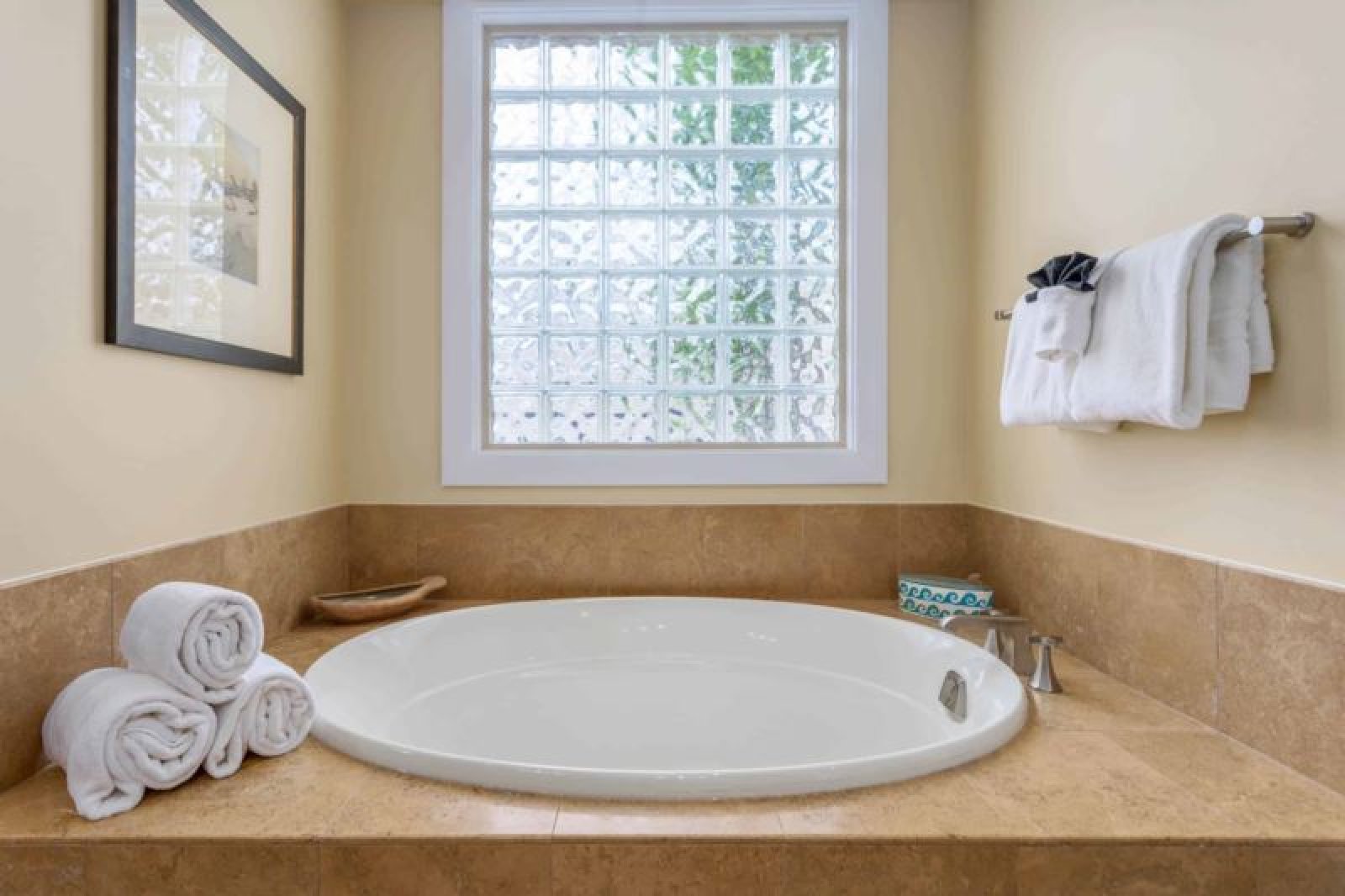Bed: King Bed • En-Suite Bath with Shower, Bathtub and Dual Vanity • Flat-Screen TV • Direct Access to Patio