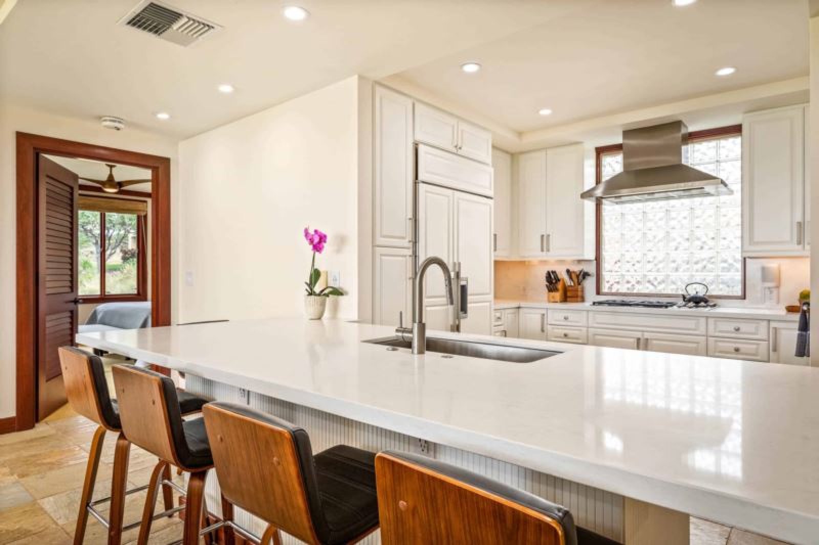 Fully Equipped Kitchen Gas Stove • Sub-Zero Appliances • Bar Seating - for 5