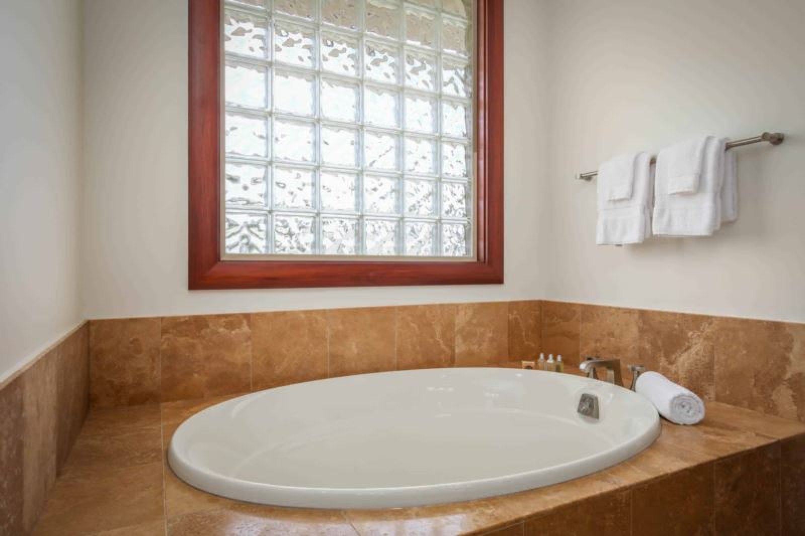 Bed: King Bed • En-Suite Bath with Shower and Bathtub • Flat-Screen TV • Direct Access to Patio