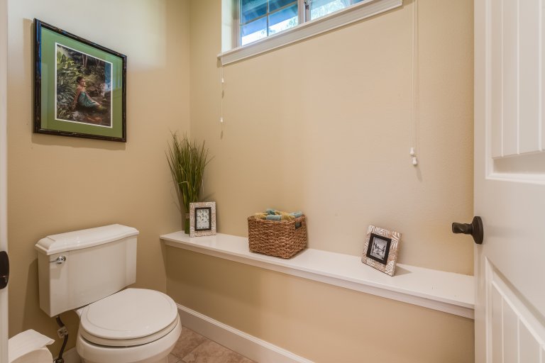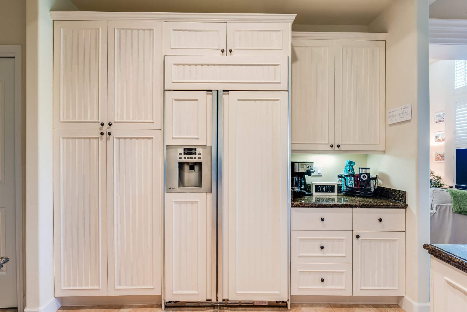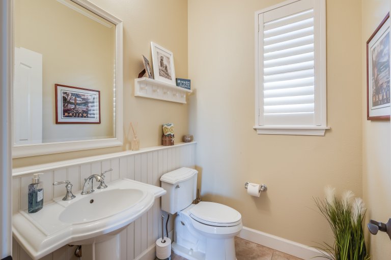 The fully equipped gourmet kitchen features granite countertops, stainless steel appliances, and ample cabinetry stocked with kitchen basics. You will find a coffee station, blender, rice cooker, crockpot, and more, so cooking is effortless whether you are preparing a simple breakfast or a relaxed family dinner. A nearby powder room and full laundry room add everyday convenience.