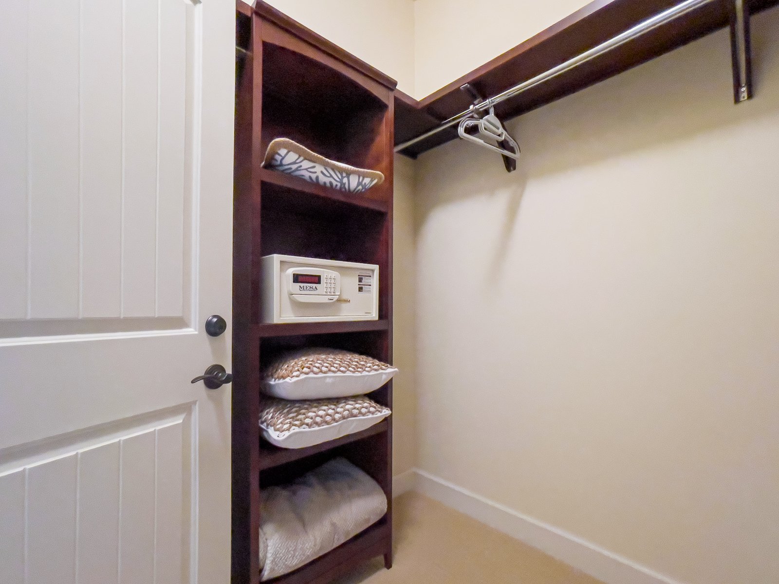 Bed: King Bed • En-Suite Bath with Walk-In Shower, Jacuzzi Tub and Dual Vanity • Central Air Conditioning • Direct Access to Terrace • Ceiling Fan • Flat-Screen TV • Walk-In Closet • Safe