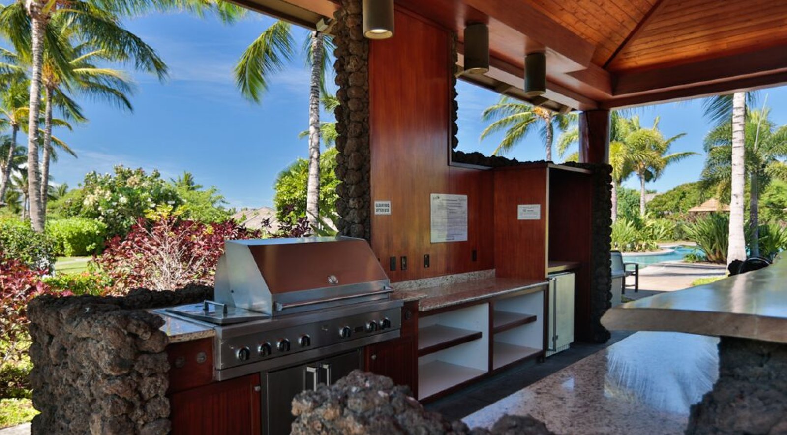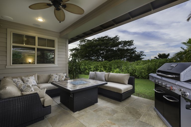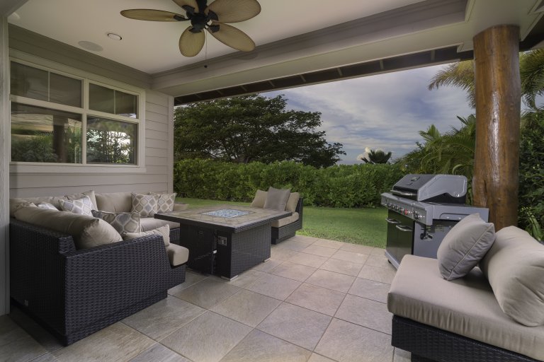 • Spacious lanai with lounge seating and BBQ grill