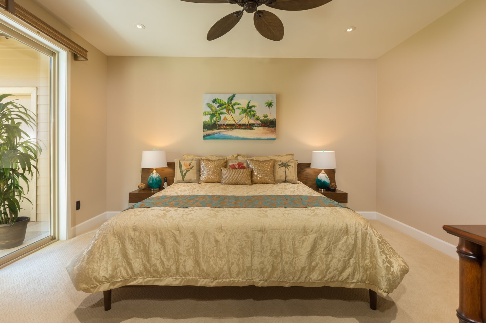 • Bedroom 3 – King bed, lanai access, mountain views, central AC