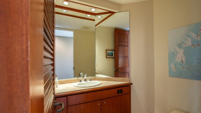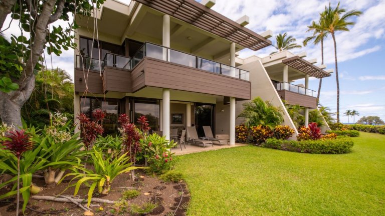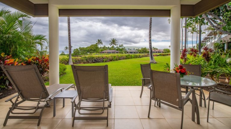 The ground-floor lanai serves as an extension of the living space, offering a tranquil setting for lounging, dining, or simply enjoying the sights and sounds of the Big Island. Its proximity to the golf course and landscaped grounds adds to the serene atmosphere while maintaining privacy.Residence Details