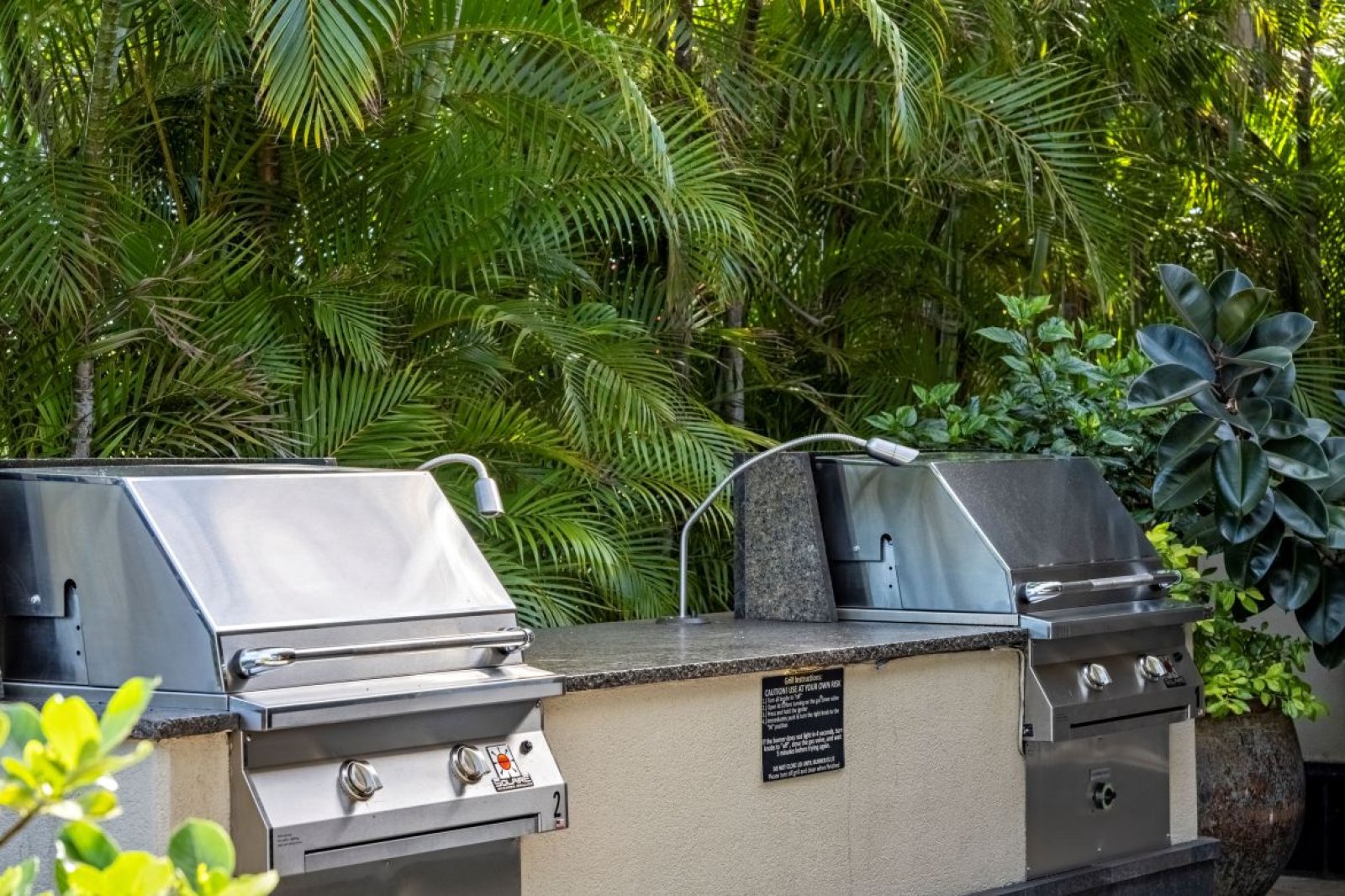 The fully equipped gourmet kitchen features stainless steel appliances, granite countertops, and ample workspace for preparing island-inspired meals. An adjacent dining area seats four comfortably, ideal for casual breakfasts or relaxed evenings at home.Outdoor Living
