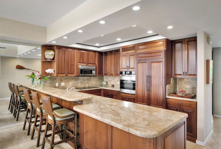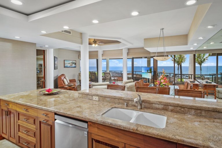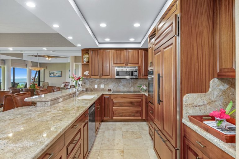 The fully equipped kitchen is designed for both everyday ease and entertaining, featuring modern appliances, granite countertops, and ample cabinetry. Prepare meals using fresh island ingredients and enjoy them indoors or on the lanai, where the sights and sounds of the ocean elevate every dining experience.Golf Privileges & Exclusive Experiences