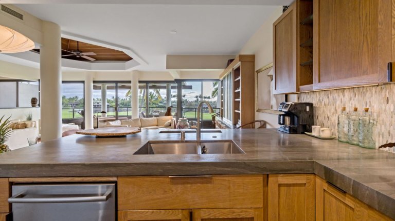Guests enjoy access to Mauna Lani Point’s resort amenities, including a swimming pool, hot tub, sauna, and a pool pavilion with an outdoor kitchen and BBQ grills. You’ll also have exclusive access to the private Mauna Lani Beach Club, a pristine beach ideal for swimming, snorkeling, and relaxing along calm turquoise waters.Location