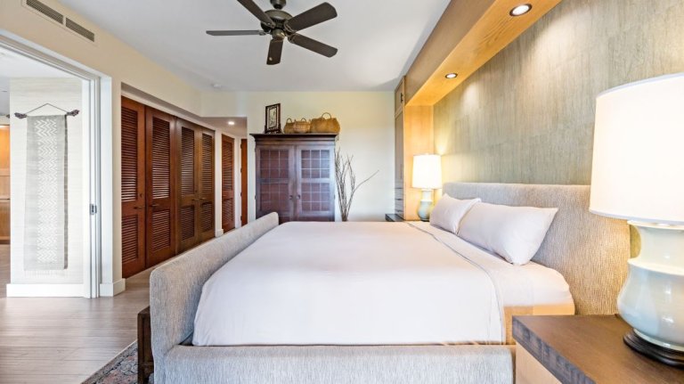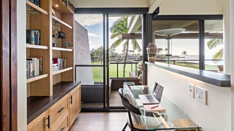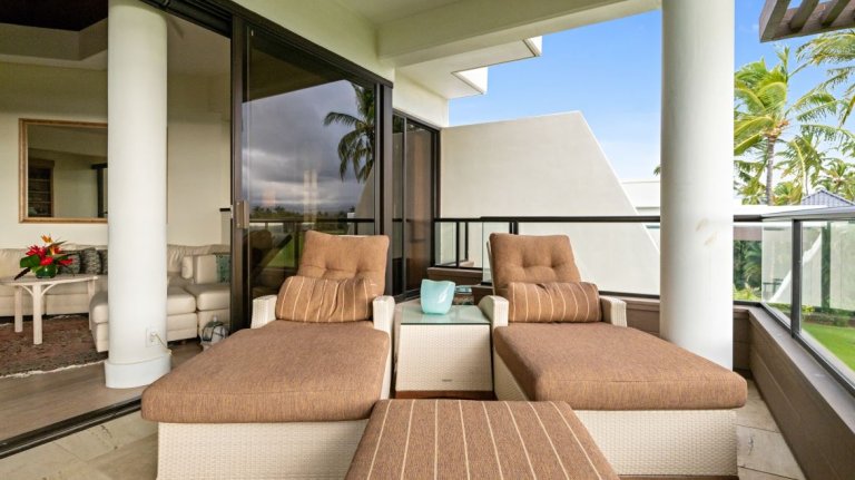 Step out onto your private lanai and take in sweeping views of the Pacific Ocean and the lush fairways of the Mauna Lani Golf Club. It’s the perfect spot for morning coffee, sunset cocktails, or simply unwinding to the sounds of the island.
