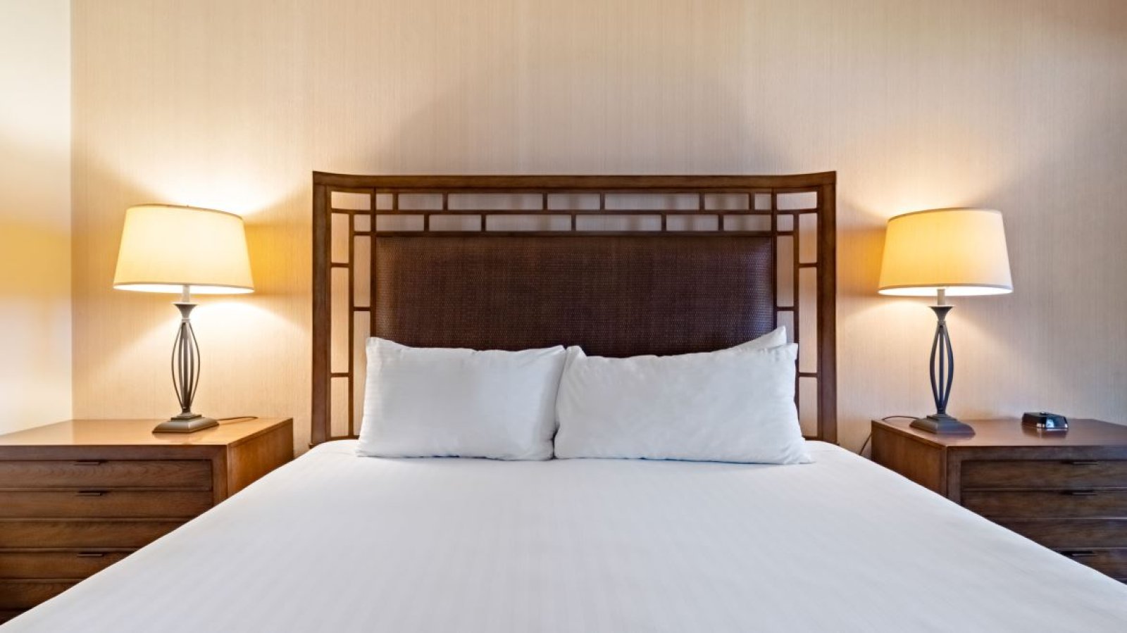 Bed: King Bed • En-Suite Bath with Walk-In Shower, Bathtub and Dual Vanity • Cable TV • Ceiling Fan • Direct Access to Private Balcony
