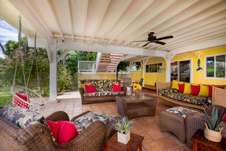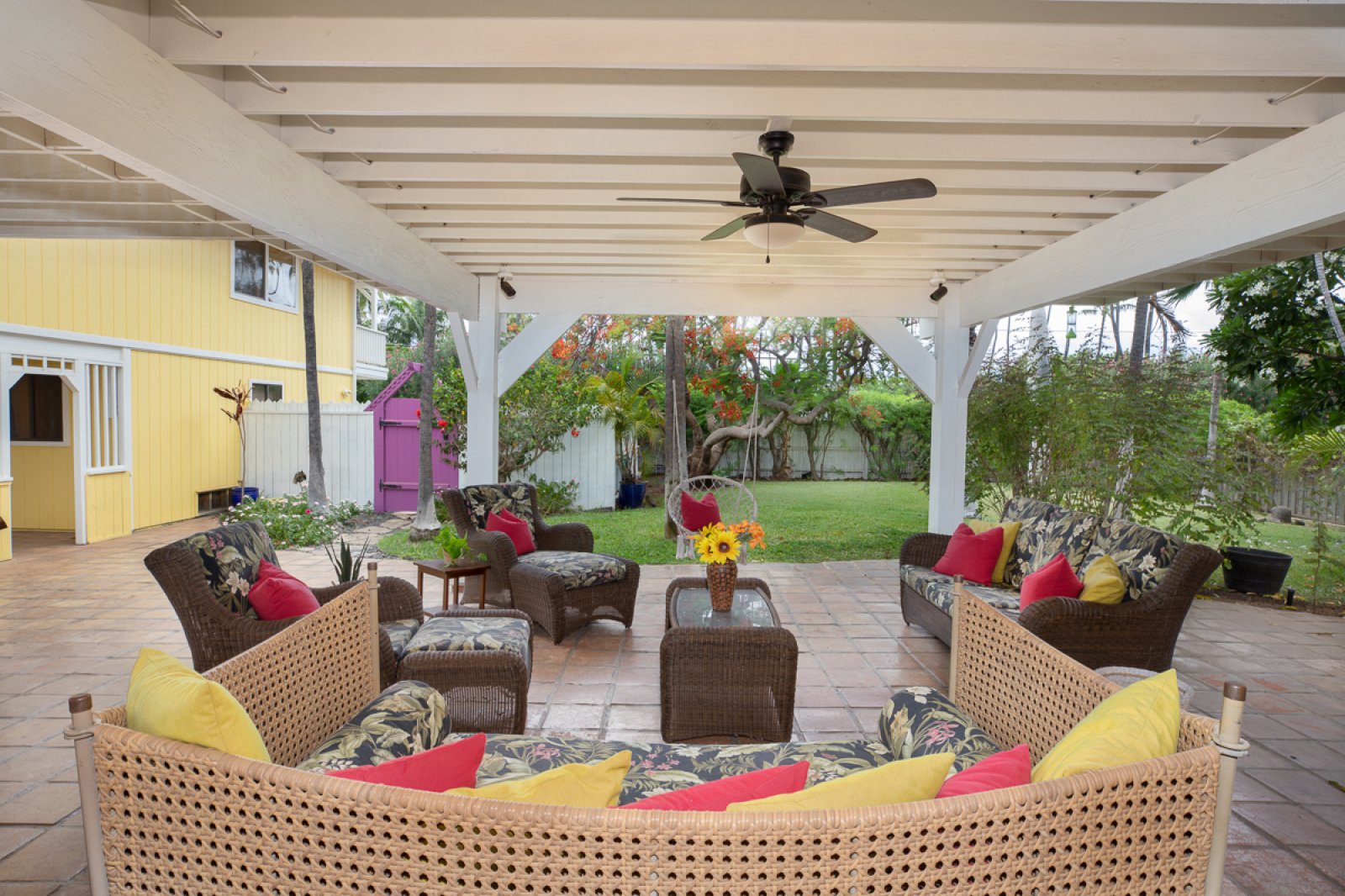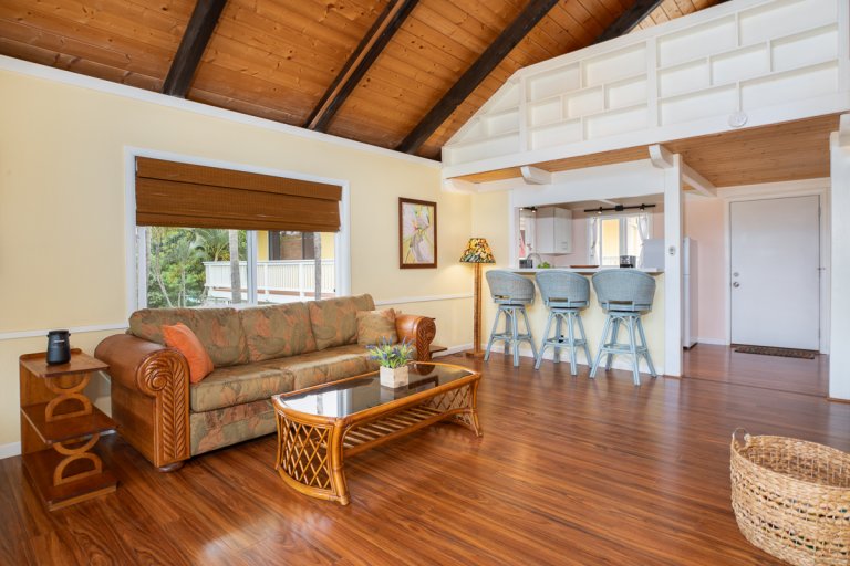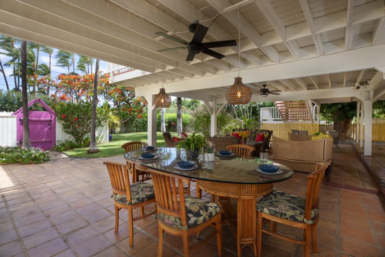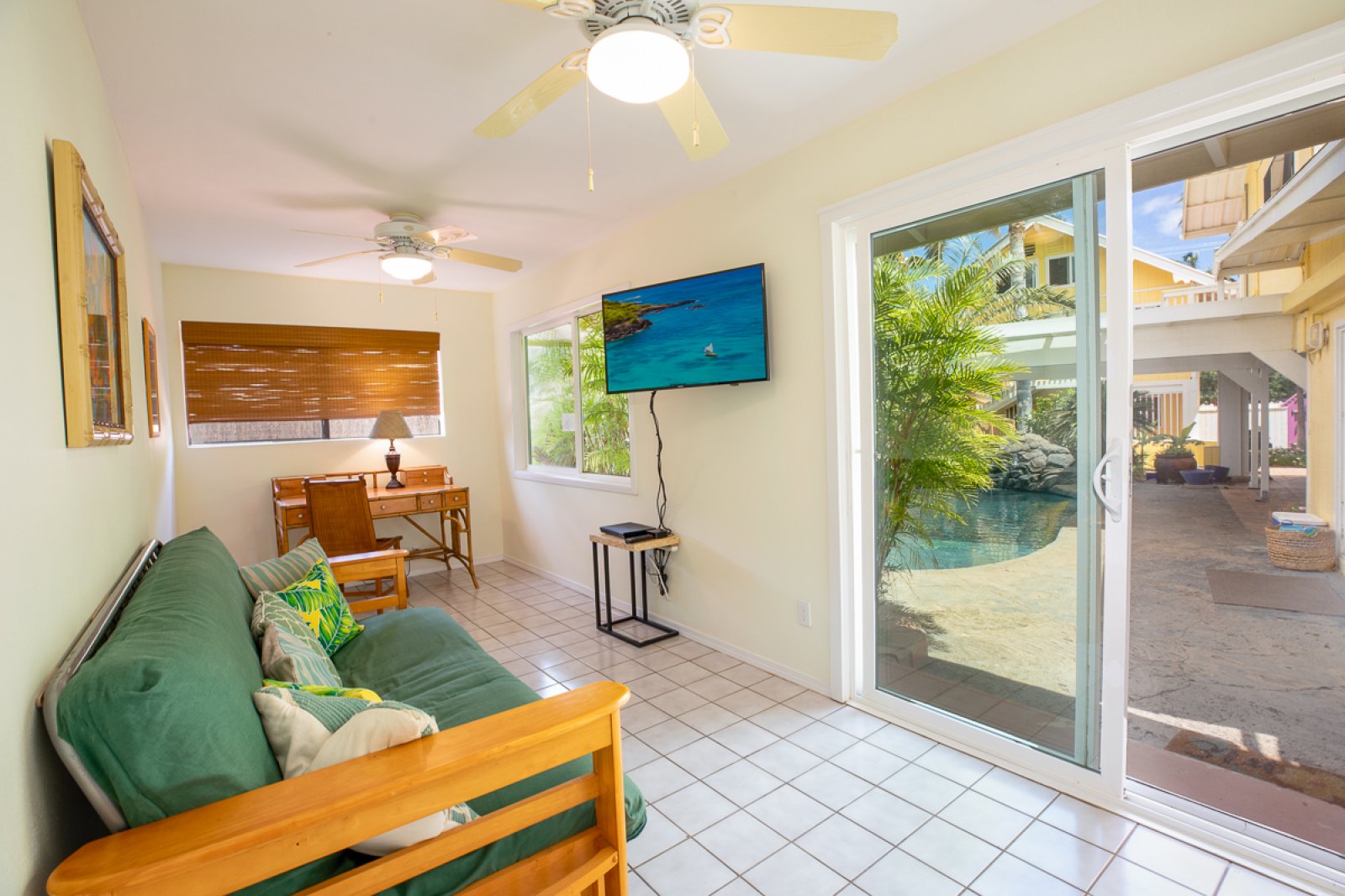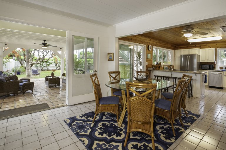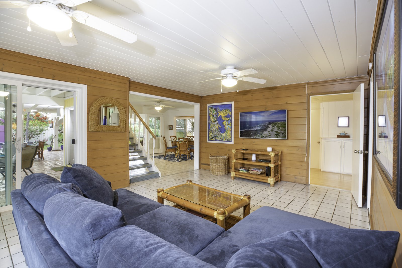 The expansive layout of Honu Ohana invites natural light and a flow that connects living spaces seamlessly. Relax in the cozy living area, designed for game nights or movie marathons, complemented by ample dining space ideal for bringing everyone together.
